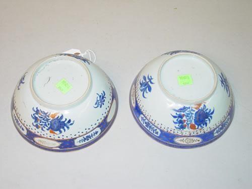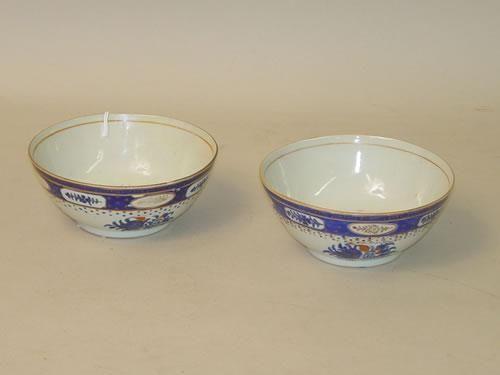 PR. OF CHINESE EXPORT BOWLS W/ GILT, COBALT & RED FLORA