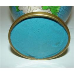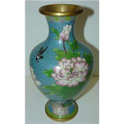 PAIR OF CLOISONN+ MANTEL VASES. Floral & gilt decorated with hummingbirds.