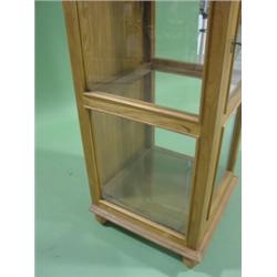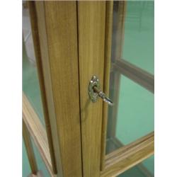 PAIR OF CONTEMPORARY CURIO CABINETS. 3 glass shelves. 3 section glass door on front. 67" H, 21.75" W, 20.75" D