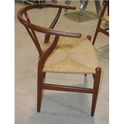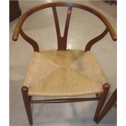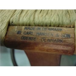 Pair of Danish Carl Hansen & Sons arm chairs with rush bottom seats. 28.5" H, 19" W, 16" H to top of seat.