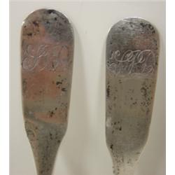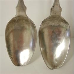 PAIR OF DELAWARE COIN SILVER TEA SPOONS. Marked on reverse of handles "J. Guthre". Monogrammed "?RD" on front of handles. 5.75" L