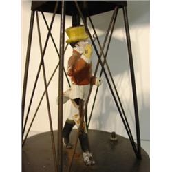 Pair of figural tin table lamps with gentlemen. Gentleman on one lamp is damaged. 19" H