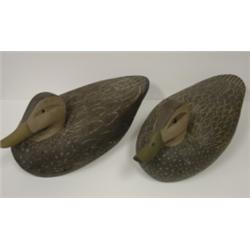 Pair of stamped NMS mallard hen decoys. Cork body. Made by Nelson Spence.