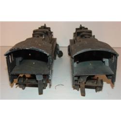 PAIR OF MARX NO. 666 LOCOMOTIVE ENGINES. Both are marked Marx on both sides. Minor wear to paint. Fair condition.