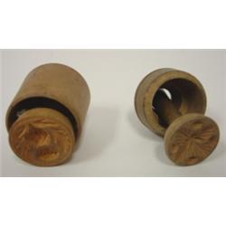 PAIR OF MINIATURE BUTTER PRINTS. Both are wheat patterned.