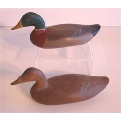 Miniature Eastern Shore mallard drake & hen decoys. Original paint. Unmarked.