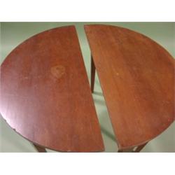 PAIR OF NORTH CAROLINA WALNUT HALF TABLES. Tapered legs. Tops show signs of surface scratching. 29.75" H, 36" W, 19.25" D