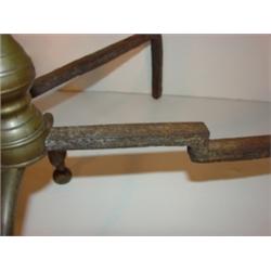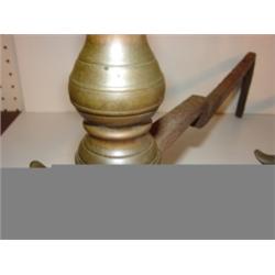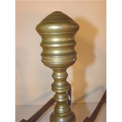 PAIR OF PERIOD CHIPPENDALE BRASS BEEHIVE FORM ANDIRONS. Ball feet. Beehive form tops. 15.5" H, 17" L