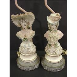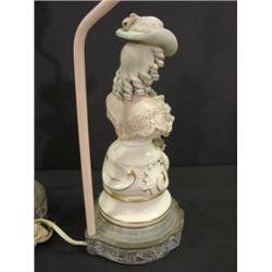 PAIR OF PORCELAIN FIGURAL LAMPS of Victorian era female busts. Metal bases. Both are electrified. 21.5" H