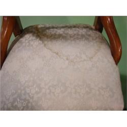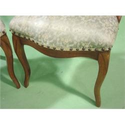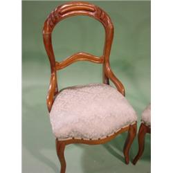 PAIR OF VICTORIAN WALNUT FINGER CARVED SIDE CHAIRS. Water staining to both upholstered seats. 35.75" H to top of back, 18.25" W