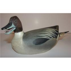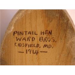 Pair of Ward Bros. 1964 half-size pintail decoys with hissing drake. Original paint. Marked on bottom "Pintail Hen (Drake)-Ward Bros.-Crisfield, MD-1964".
