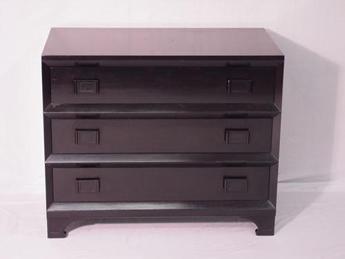 PR. ORIENTAL STYLE 20TH CENT. CUSTOM BLACK LACQUER 3 DRAWER CHESTS, UNMARKED (36" W X 20" D X 30" H) - WEAR & IMPERFECTIONS