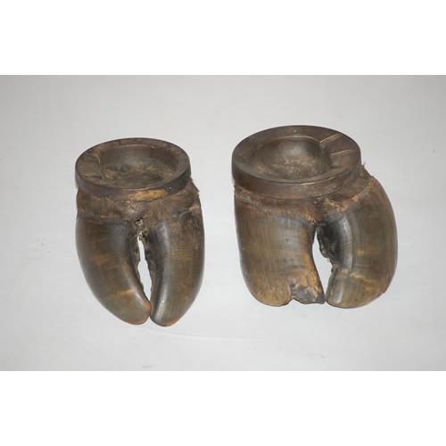 PR. TAXIDERMY MOUNTED HOOF ASHTRAYS - PR. EXOTIC TROPHY CLOVEN HOOF ASHTRAYS (FROM TED WILLIAMS' CAPE BUFFALO TROPHY KILL WHILE ON SAFARI IN 1972) - WEAR & IMPERFECTIONS