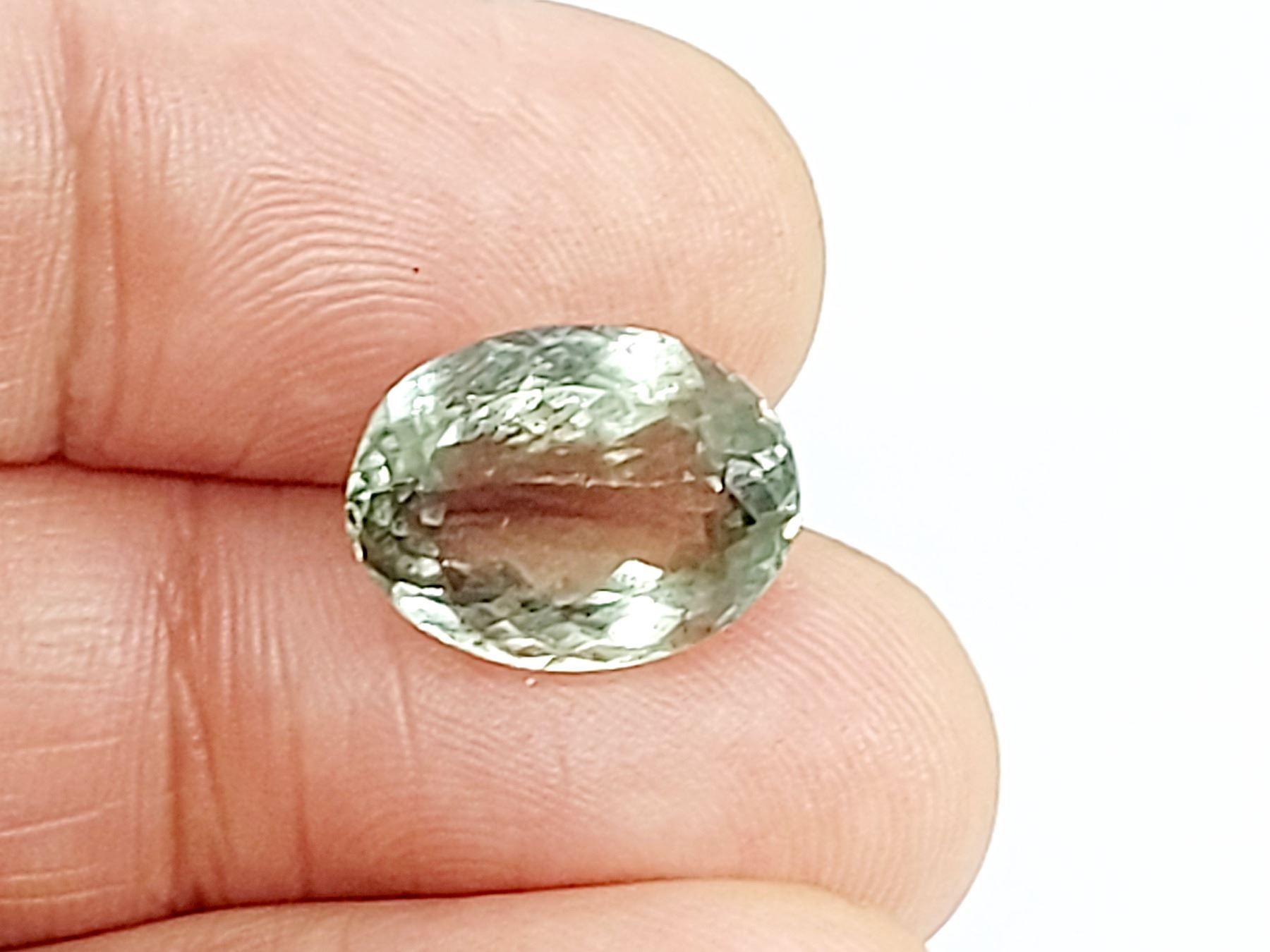 13.835 ct. 16.09 x 12.47 x 10.17 mm Colour: Light Green , Shape: Oval Cut , Clarity: Loupe Clean , Luster: Exceptional , Origin: Brazil Untreated