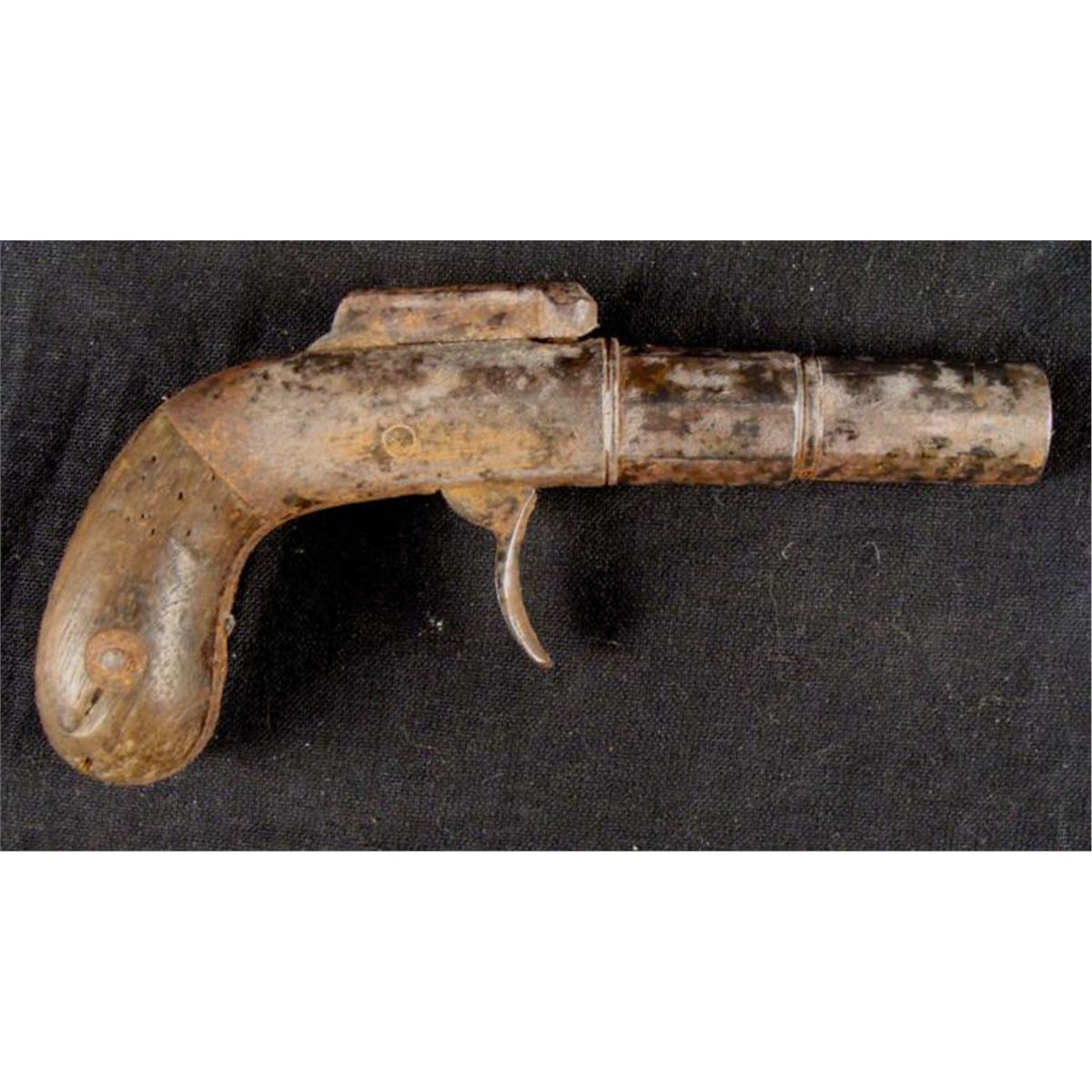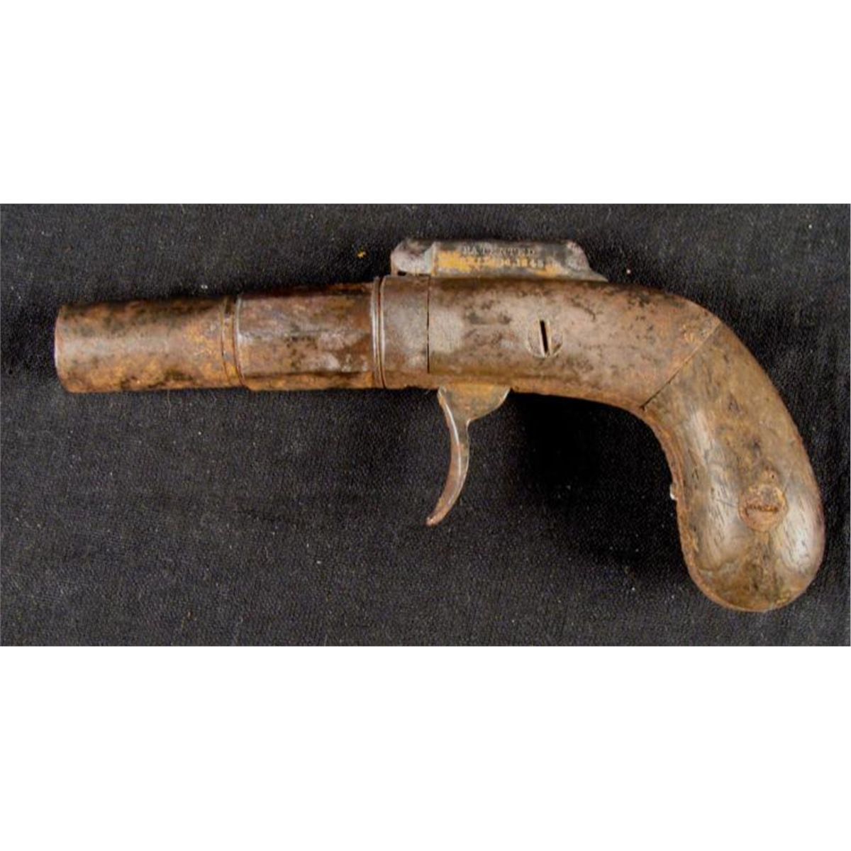 PRE-CIVIL WAR ONE SHOT PISTOL-PAT'D 1845-IN NEED OF RESTORATION * FLINT TOP-WOOD GRIPS-ROUND BARREL * 4 3/4" IN LENGTH.