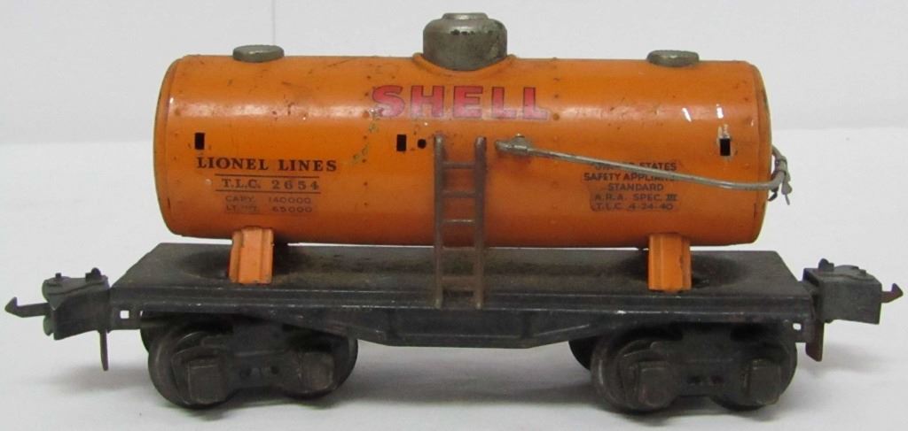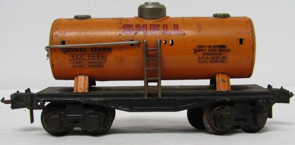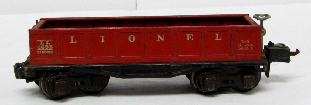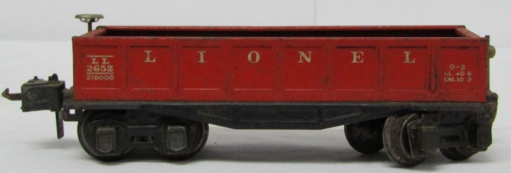 3 NICE PRE-WAR LIONEL LINES TRAIN CARS. INCLUDED ARE SHELL TLC 2654, LL 2652 GONDOLA, AND 3659 OPERATING COAL DUMP CAR. ALL NEED GOOD CLEANINGS. THE SIDE DUMP CAR IS UNTESTED.