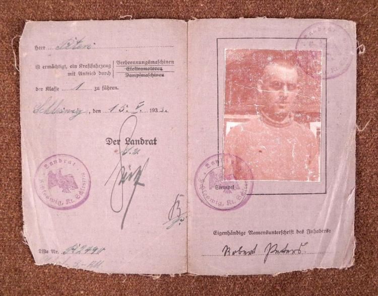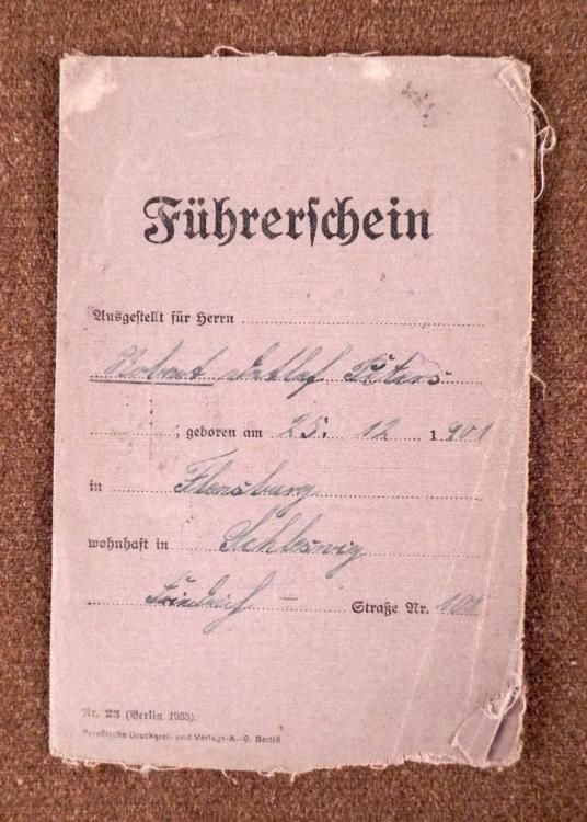 PRE-WWII 1933-"FUHRERSCHEIN--LEADER IDENTIFICATION/TRANSITIONAL GOVT LEADER/PHOTOTHIS ALSO IS FOR ROBERT PETERS--ID PAPERSFROM 1933-LARGE PHOTO OF HIM AND TRIPLE STAMPED WITH TRANSITIONAL EAGLE WITH SWASTIKA ON CHEST-GOVT RUN IN 1933 BY VON HINDENBURG &am
