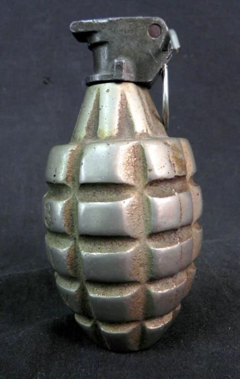 PRE-WWII INERT PINEAPPLE FRAGMENTATION HAND GRENADE-MARKED 31M---HEAVY STEEL-TOP UNSCREWS-TOTALLY INERT