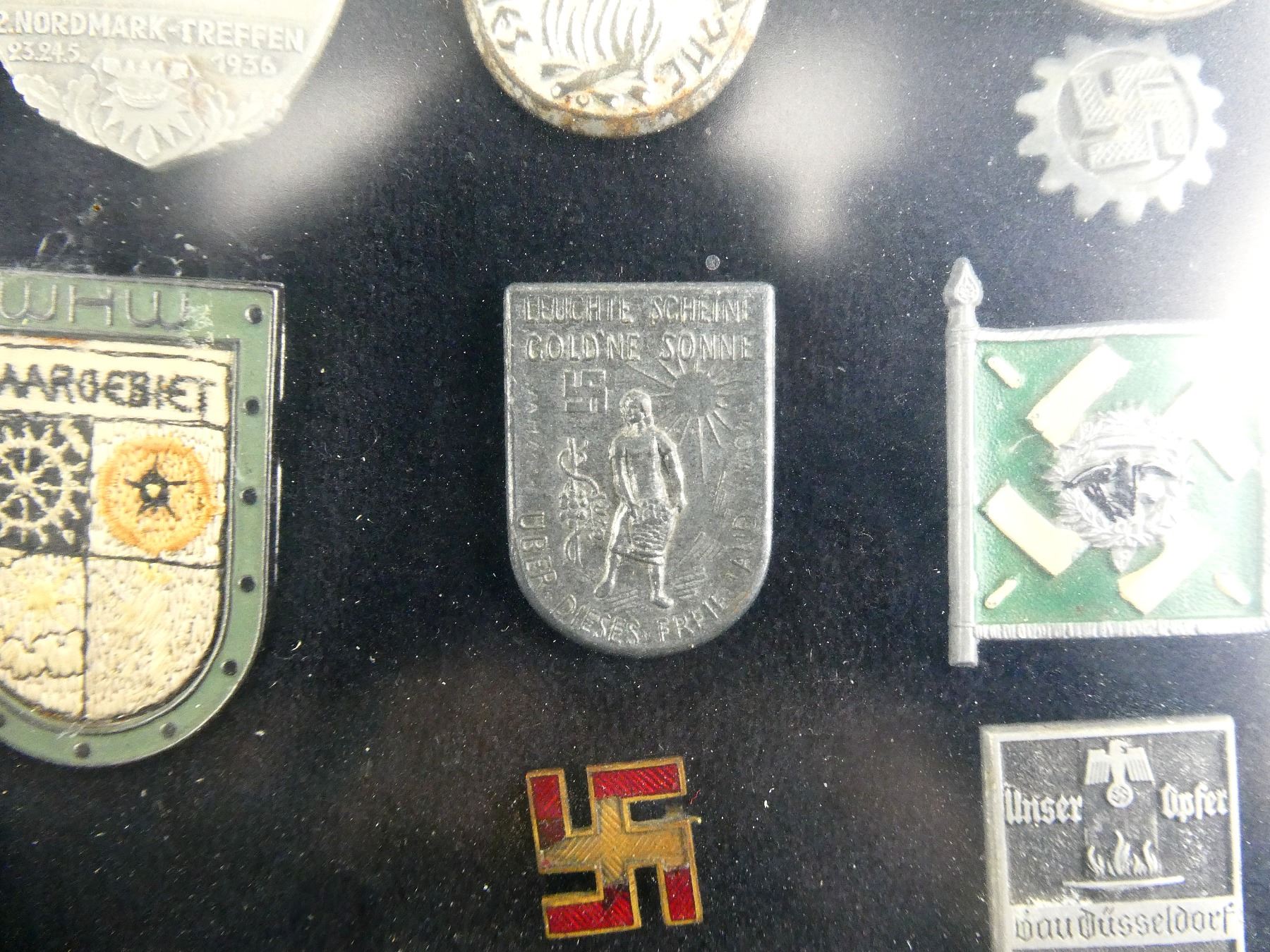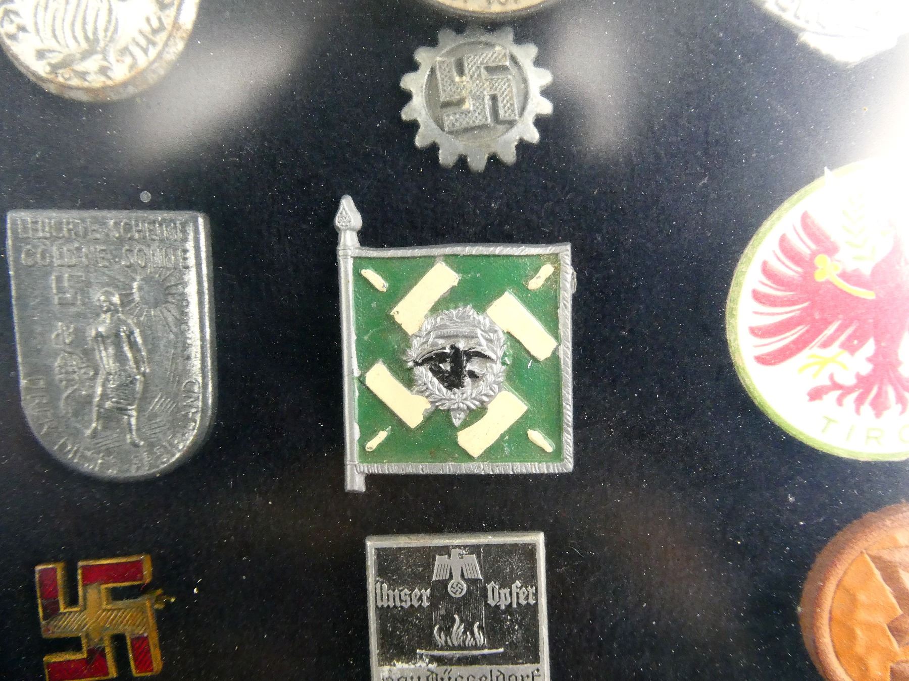 PRE-WWII / WWII GERMAN TINNIES / RALLY BADGES IN FRAME LOT
