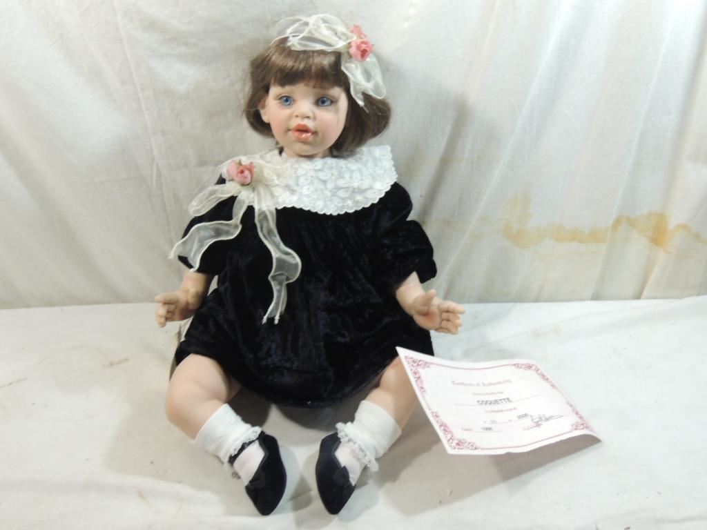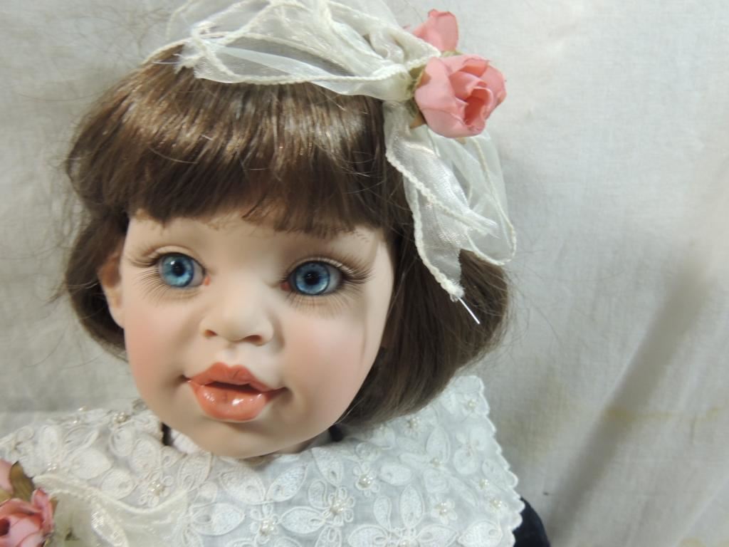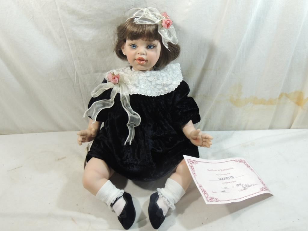 SIGNED AND NUMBERD COLLECTIBLE DOLL, LARGE DOLL, ORIGINAL BOX, FROM PRIVATE DOLL COLLECTION, DESIGNER DOLL, LIMTED EDITION, AS SHOWN SEE PHOTO FOR MORE DETAILS.