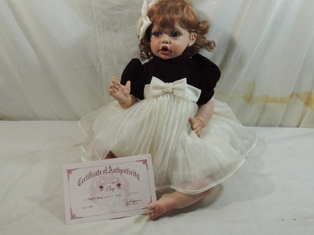 SIGNED AND NUMBERD COLLECTIBLE DOLL, LARGE DOLL, ORIGINAL BOX, FROM PRIVATE DOLL COLLECTION, DESIGNER DOLL, LIMTED EDITION, AS SHOWN SEE PHOTO FOR MORE DETAILS.
