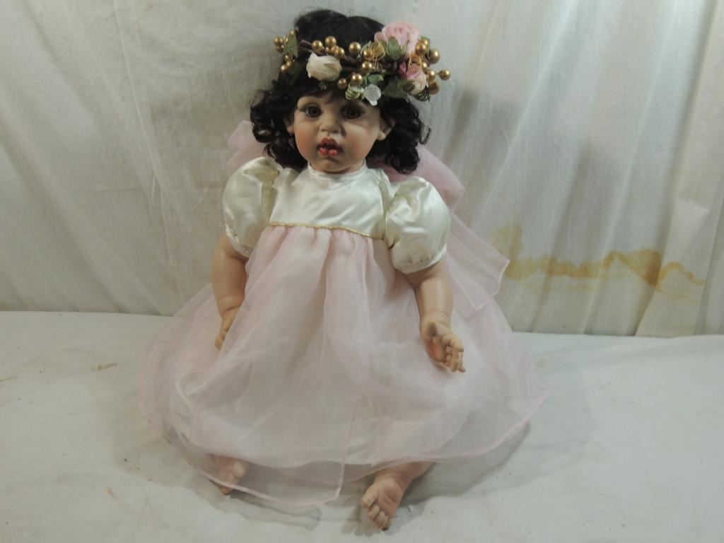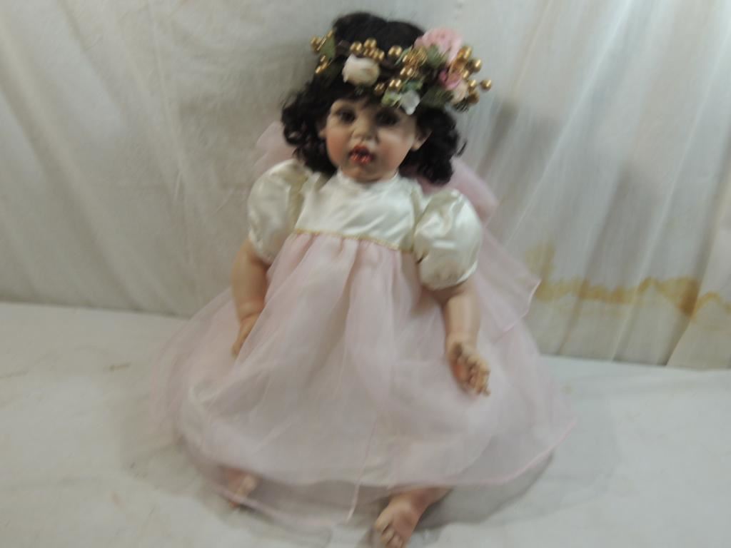 SIGNED AND NUMBERD COLLECTIBLE DOLL, LARGE DOLL, ORIGINAL BOX, FROM PRIVATE DOLL COLLECTION, DESIGNER DOLL, LIMTED EDITION, AS SHOWN SEE PHOTO FOR MORE DETAILS.