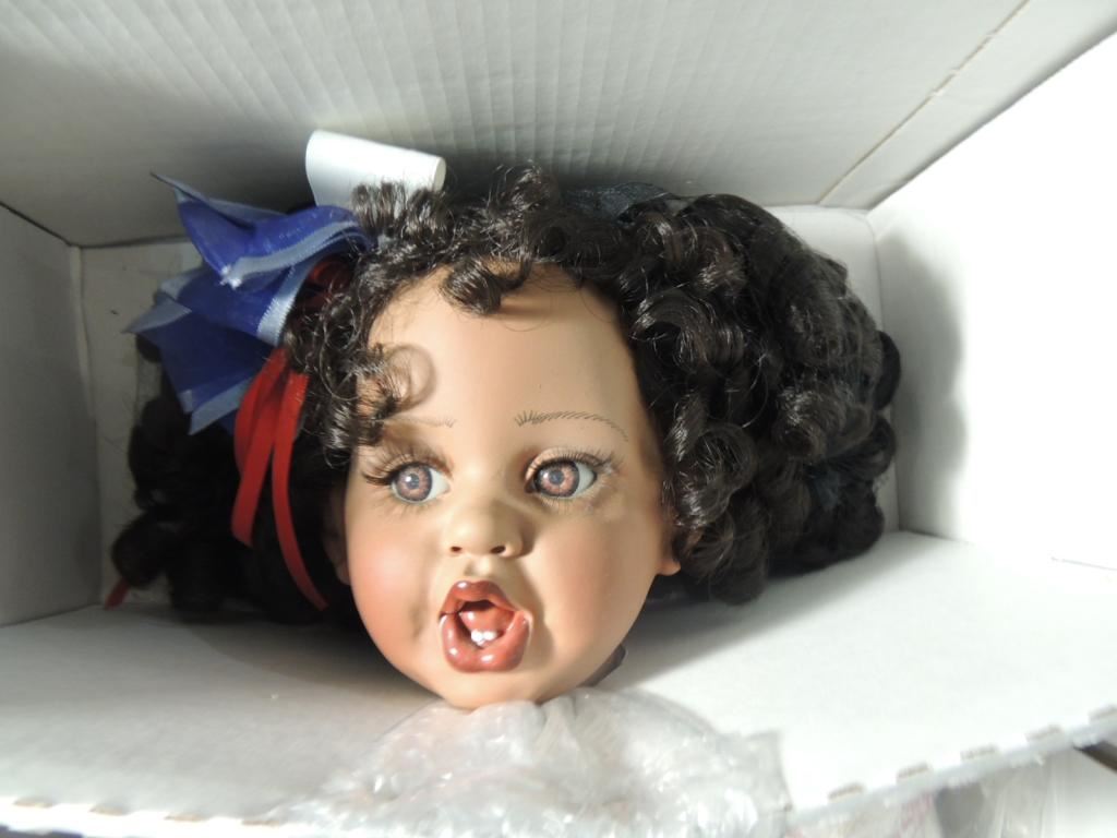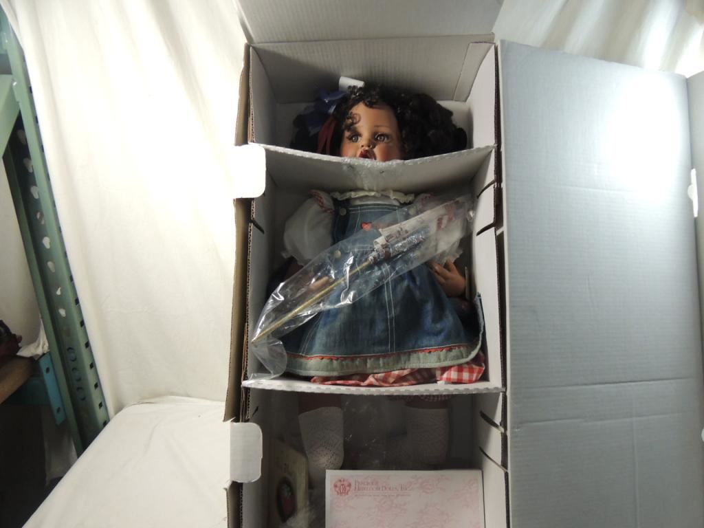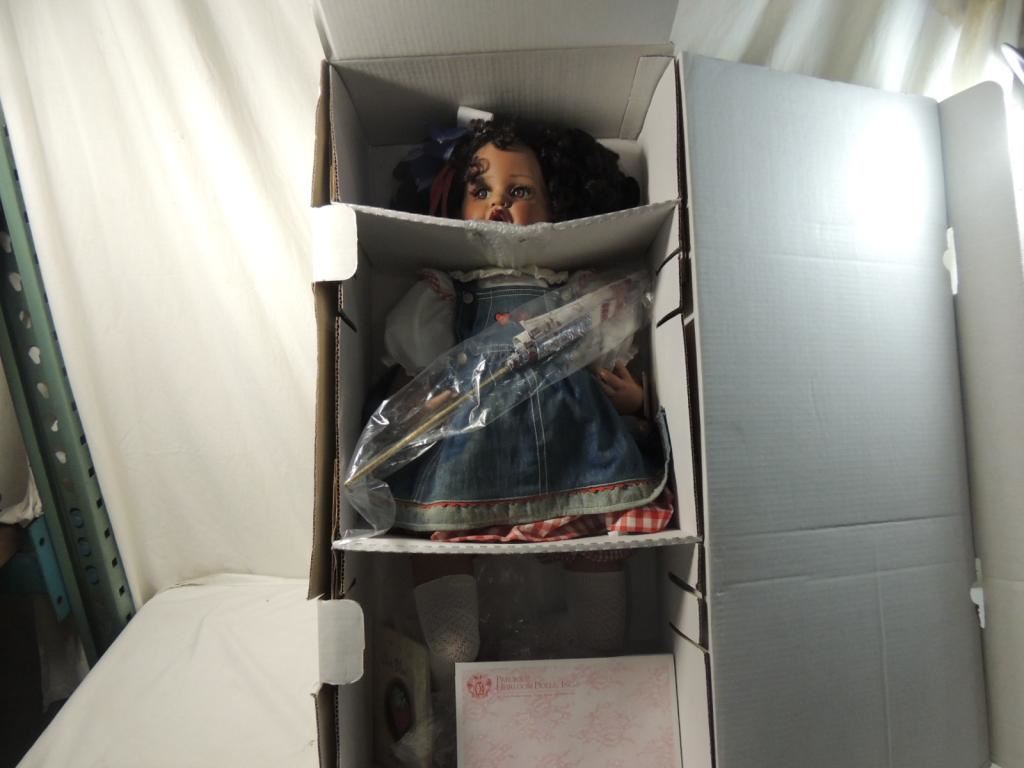 COLLECTIBLE DOLL, LARGE DOLL, ORIGINAL BOX, FROM PRIVATE DOLL COLLECTION, DESIGNER DOLL, LIMTED EDITION, COA, AS SHOWN SEE PHOTO FOR MORE DETAILS.