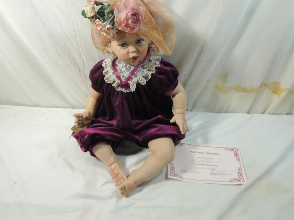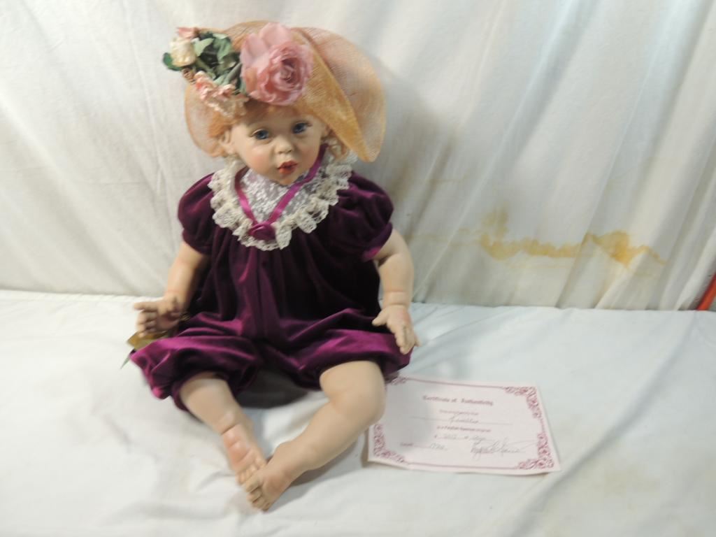 COLLECTIBLE DOLL, LARGE DOLL, SIGNED DOLL, NUMBERED , FROM PRIVATE DOLL COLLECTION, DESIGNER DOLL, LIMTED EDITION, AS SHOWN SEE PHOTO FOR MORE DETAILS.