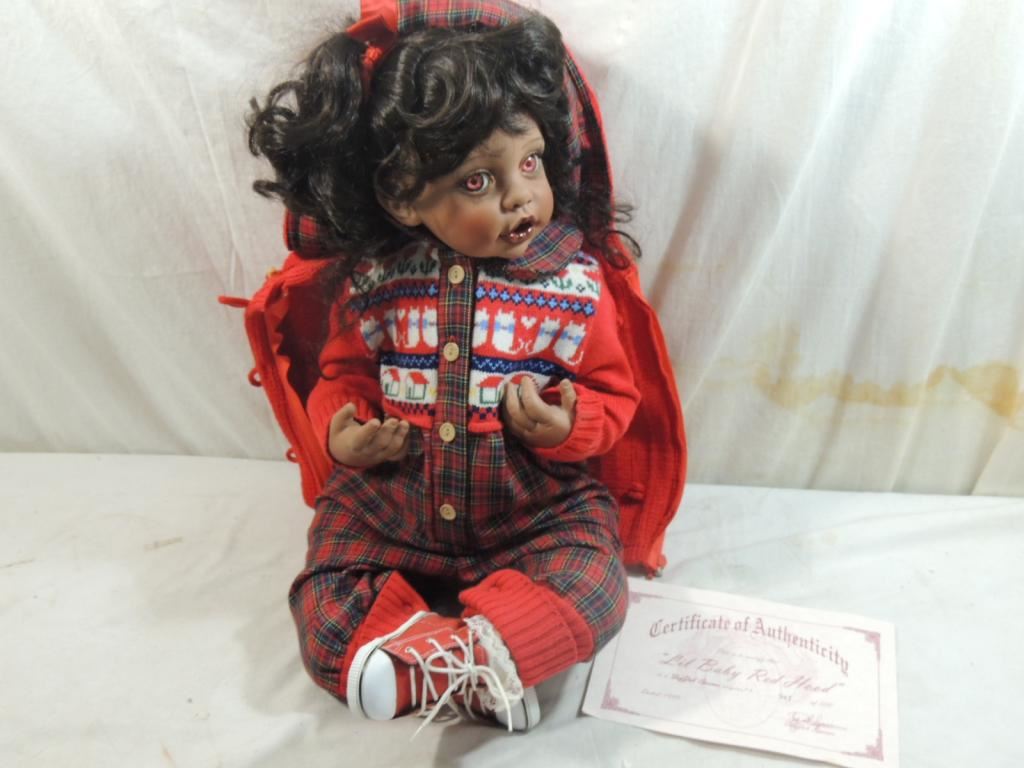 SIGNED AND NUMBERD COLLECTIBLE DOLL, LARGE DOLL, ORIGINAL BOX, FROM PRIVATE DOLL COLLECTION, DESIGNER DOLL, LIMTED EDITION, AS SHOWN SEE PHOTO FOR MORE DETAILS.