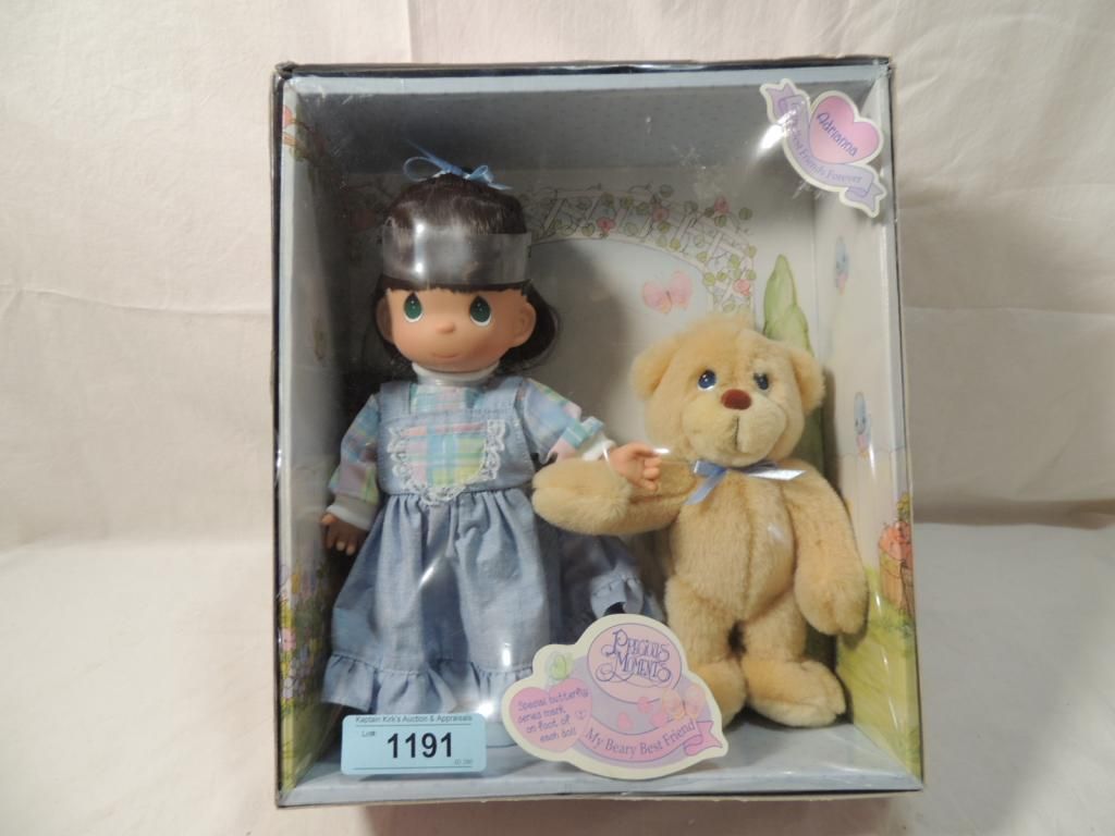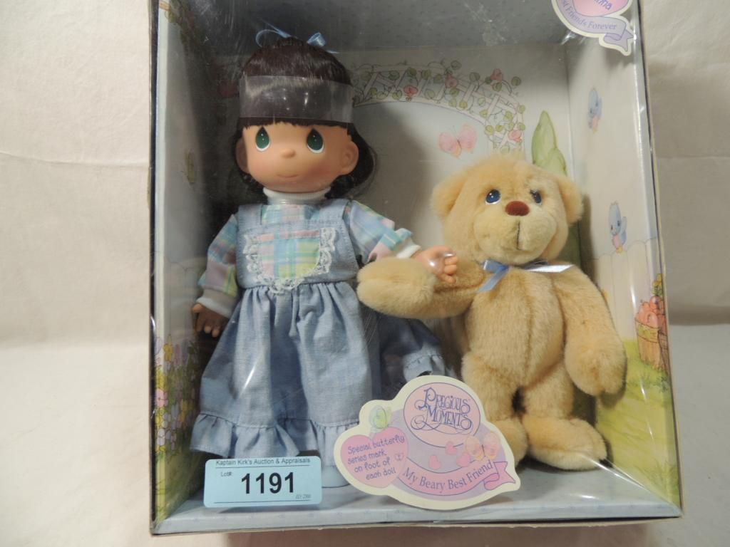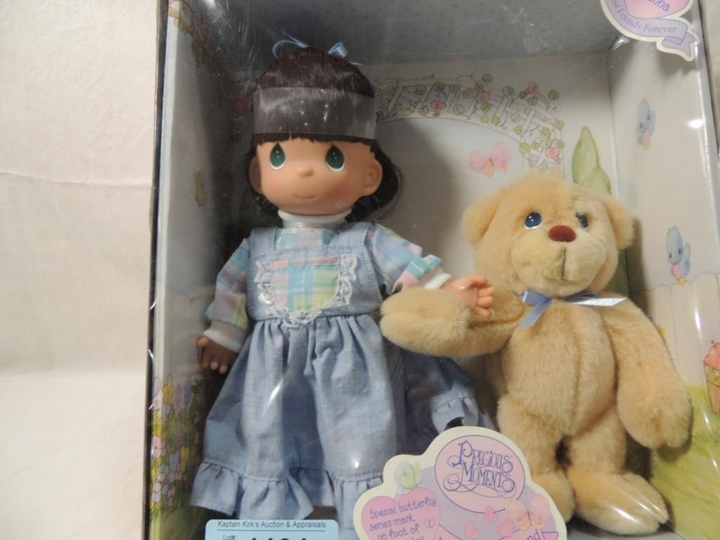 ADRIANNA BEARY BEST FRIENDS FOREVER DOLL AND BEAR. PRECIOUS MOMENTS SPECIAL BUTTERFLY SERIES MARK ON FOOT OF EACH DOLL. STILL IN BOX. AS SHOWN. SEE PHOTO FOR MORE DETAILS.
