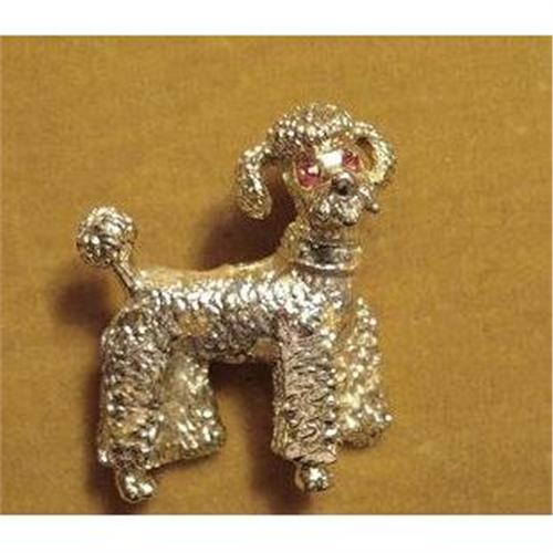 BEAUTIFUL VINTAGE GOLD TONE FIGURAL BROOCH, DEPICTING ADORABLE POODLE,WITH TWO RHINESTONE EYES, FLOPPY EARS AND PERKY LITTLE TAIL, as per images - EXCELLENT CONDITION,Measuring close to 1 1/2 inch x 1 1/4 inch. US Buyer to pay 7.00 for shipping plus insurance.THANKS.