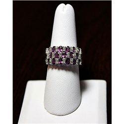 SILVER RING WITH 1 AMETHYST 56 WHITE SAPPHIRES. AMETHYST: 12.00CTW SILVER: 7.00G. RETAIL PRICE $1200.00.