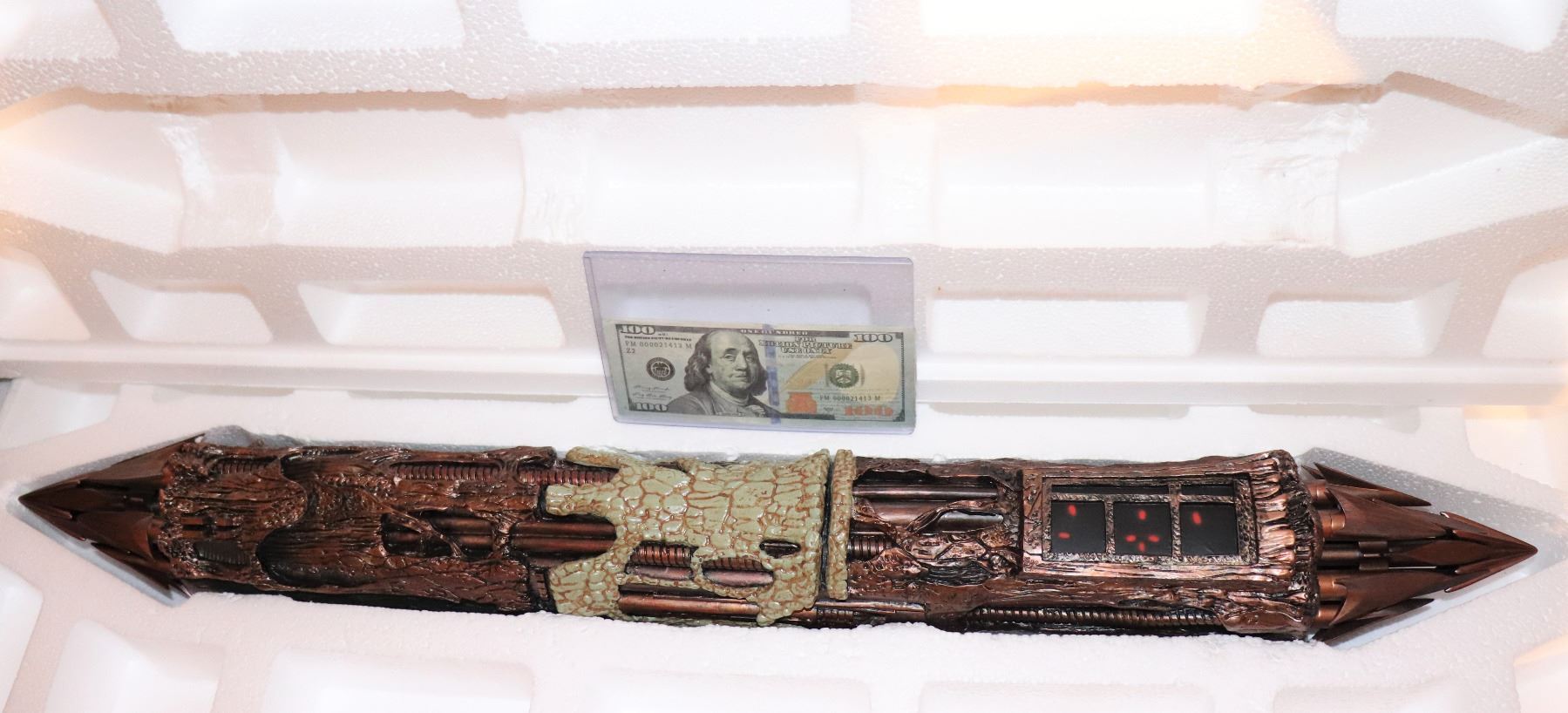 These were released in 2004 so this is Vintage. Master Replicas went out of business in 2008, ending all existing runs early. Though 2500 were licensed, the highest number I found is #898 so I believe less than 1000 were actually made. Coincidentally, it is the only other one I even found for sale, Anywhere! It is has no box, and was broken and repaired at some time. They want $900.00 for theirs!