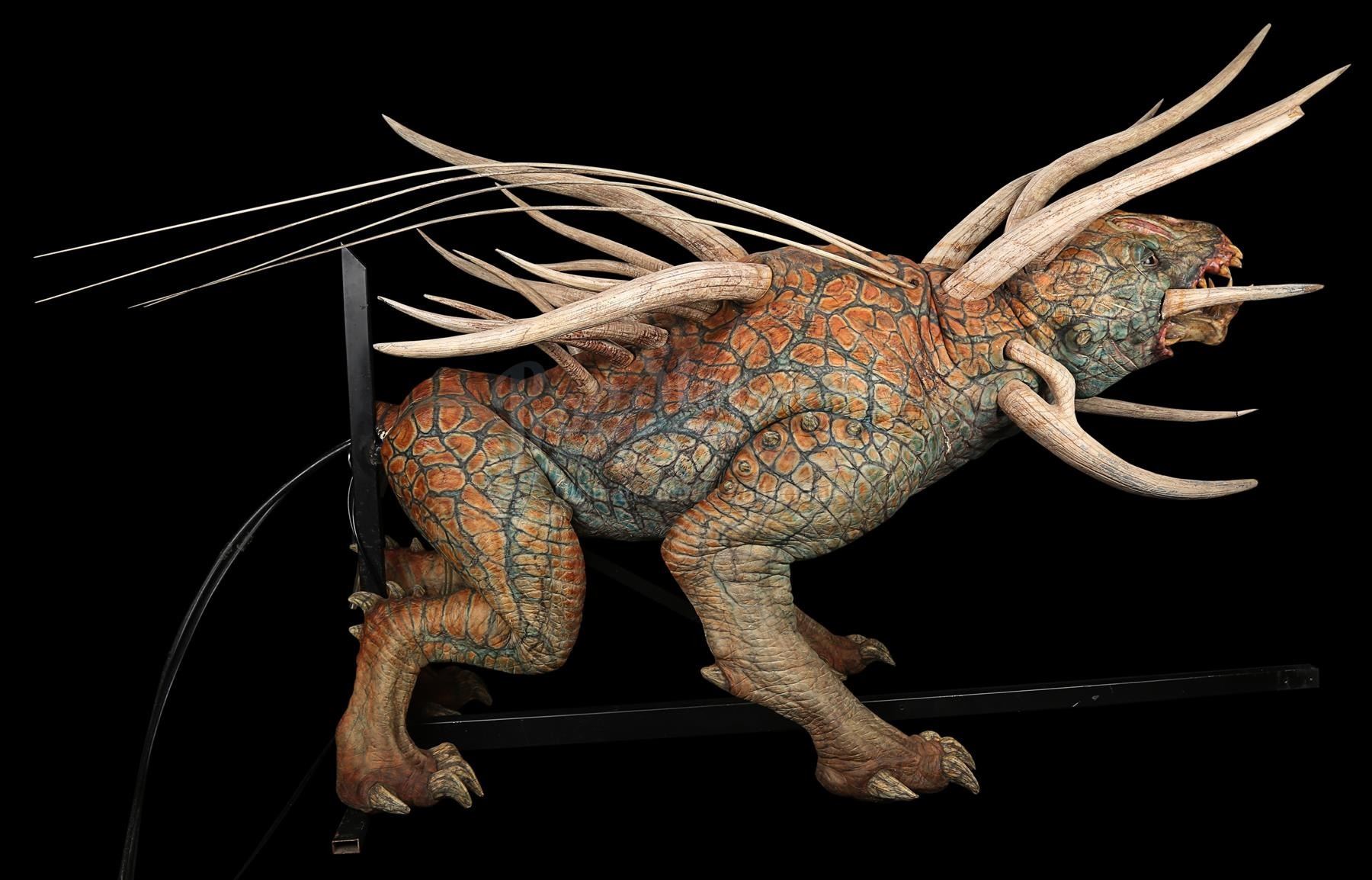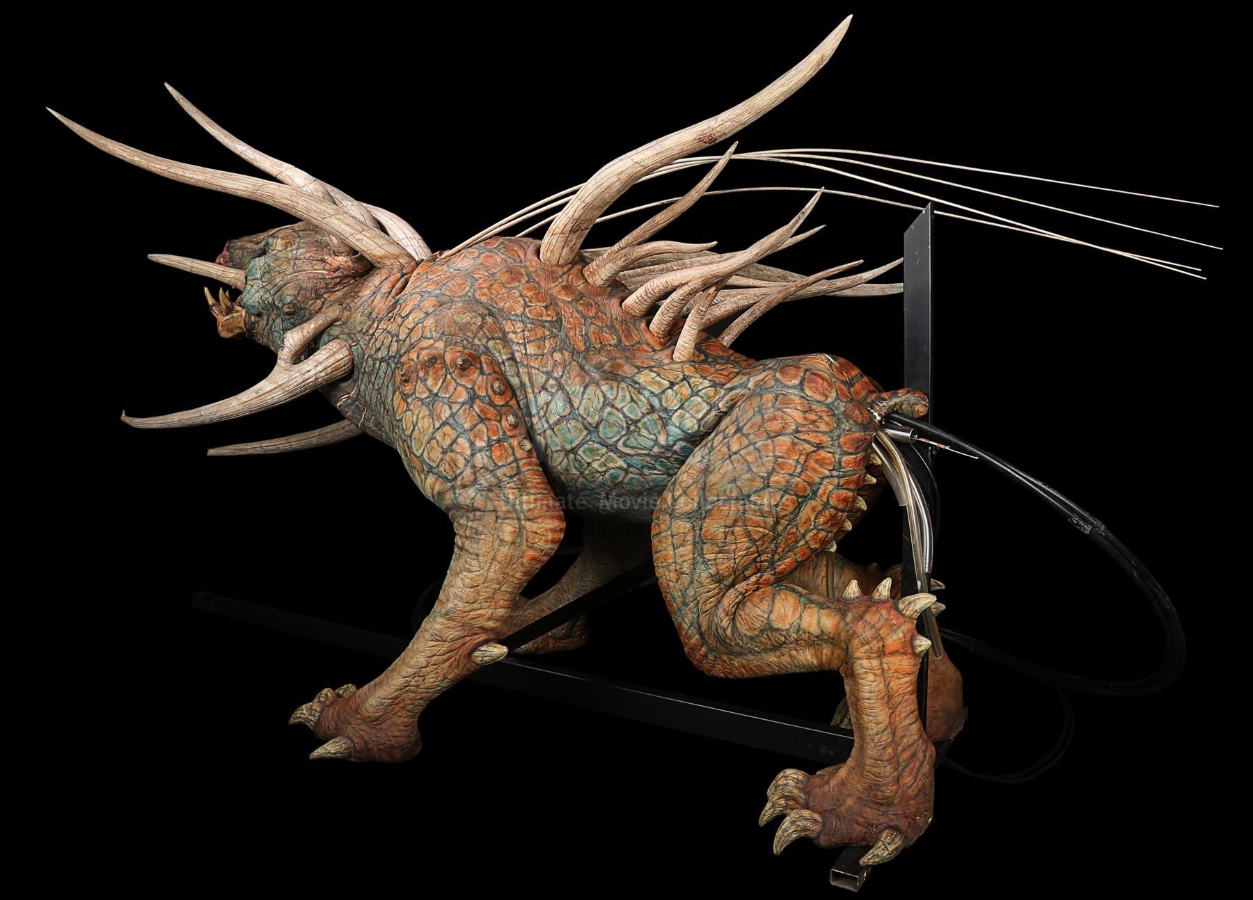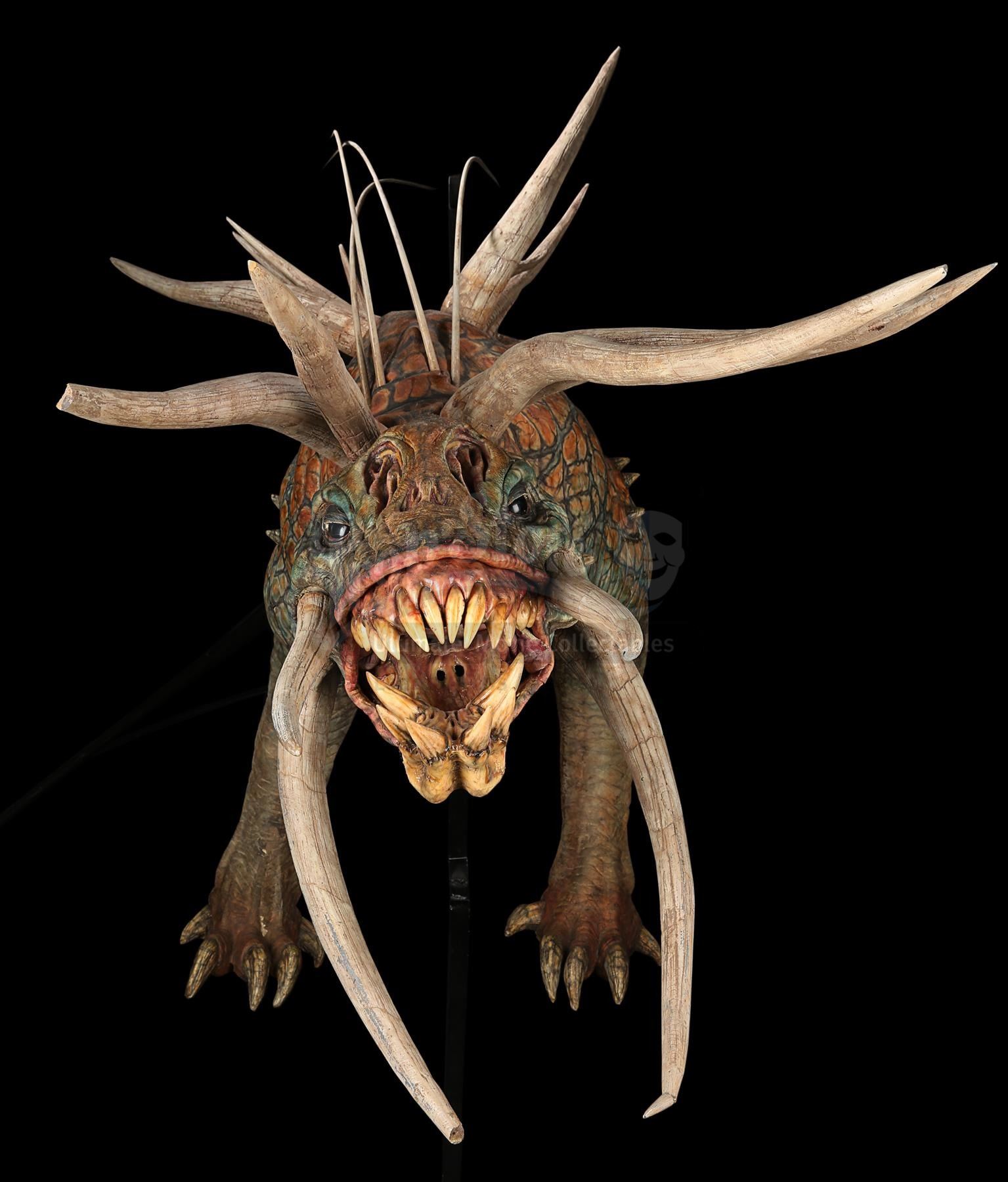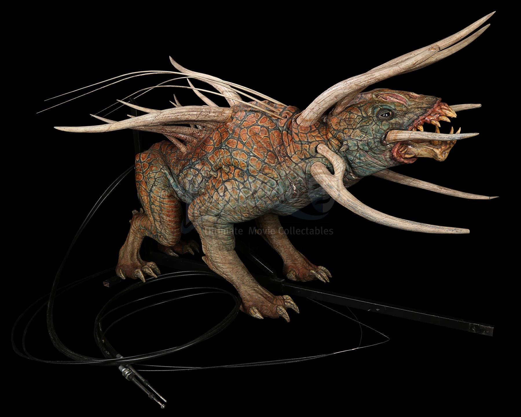 A special effects hell-hound puppet from Robert Rodriguez's sci-fi action film Predators. The quadrupedal monsters were used by the Super Predator clan to flush out their prey, and attacked Royce (Adrien Brody) and his party early in the film. While mostly presented as CGI characters, puppets were used for the more static close-ups, notably when Stans (Walton Goggins) was pinned by one of the pack, drool dripping from its jaws.