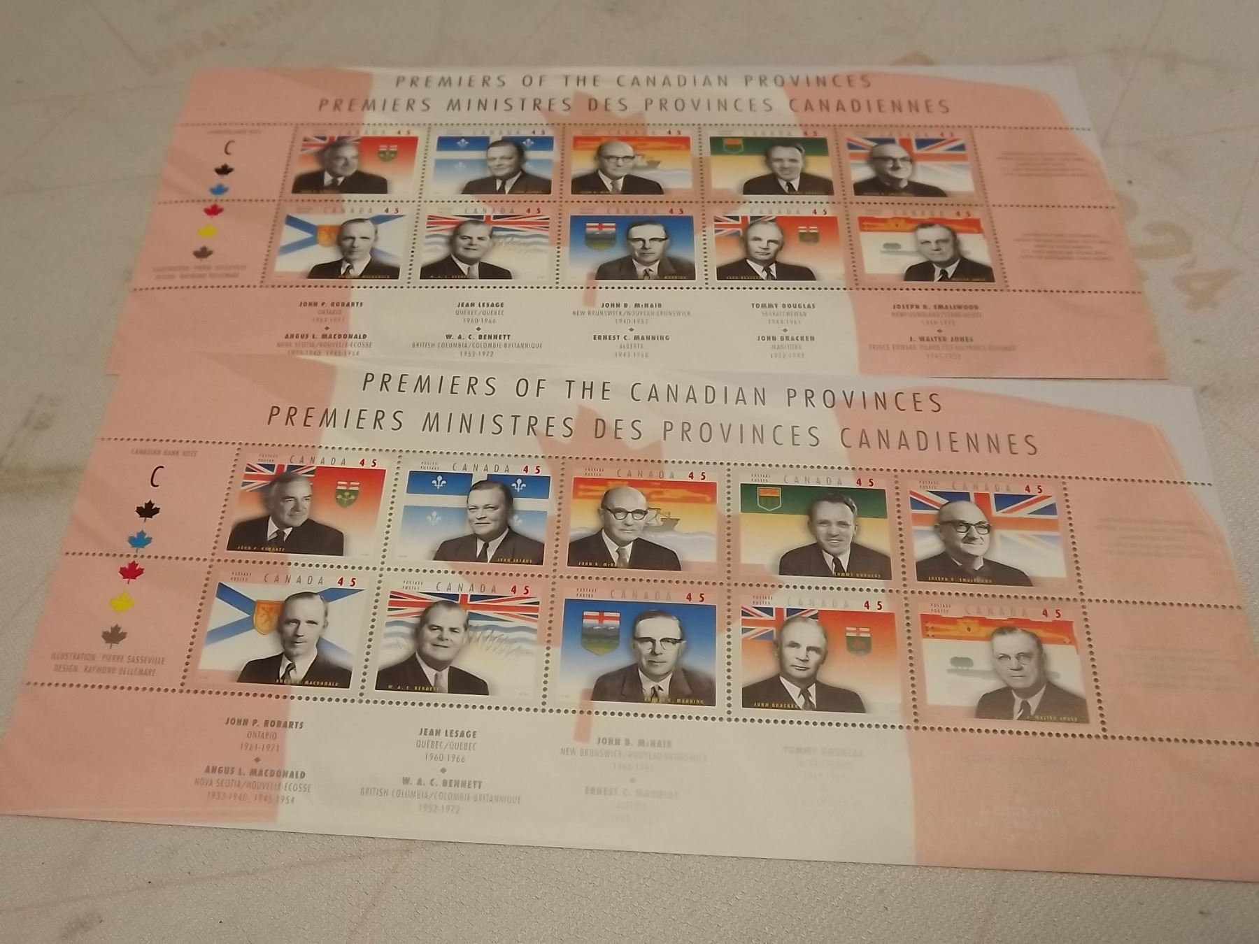 PREMIERS OF THE CANADIAN PROVINCES STAMP SHEETS X 2