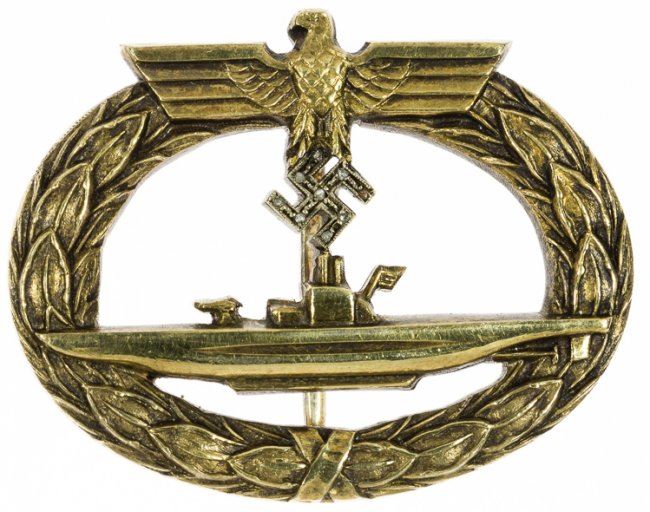PRESENTATION U-BOAT BADGE WITH DIAMONDS GIVEN U-BOAT CAPT. FRIEDRICH GUGGENBERGER, TORPEDOED THE ARK ROYAL