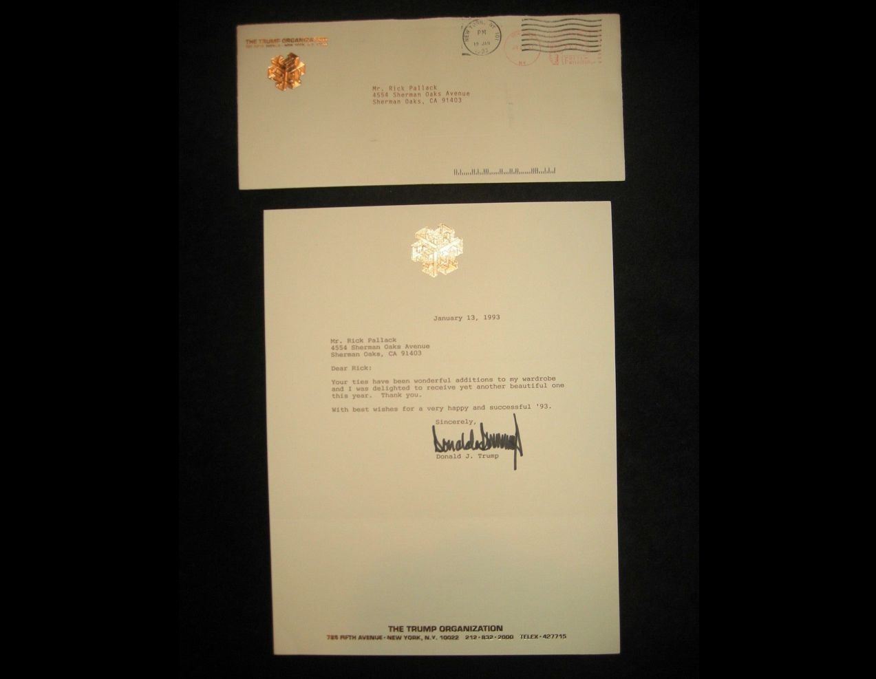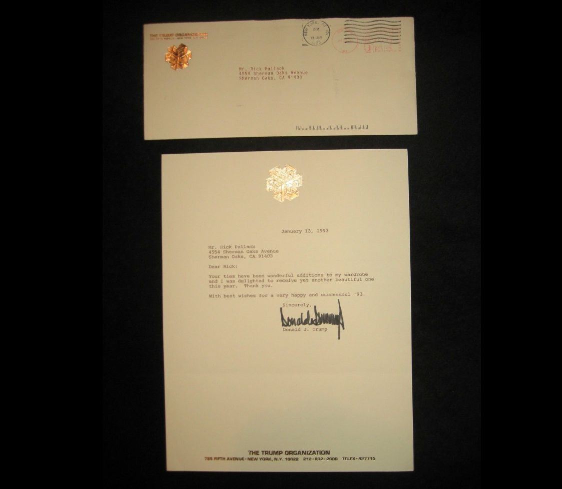 PRESIDENT DONALD TRUMP ORIGINAL RARE SIGNED AUTOGRAPHED LETTER AND ENVELOPE TO FAMOUS LOS