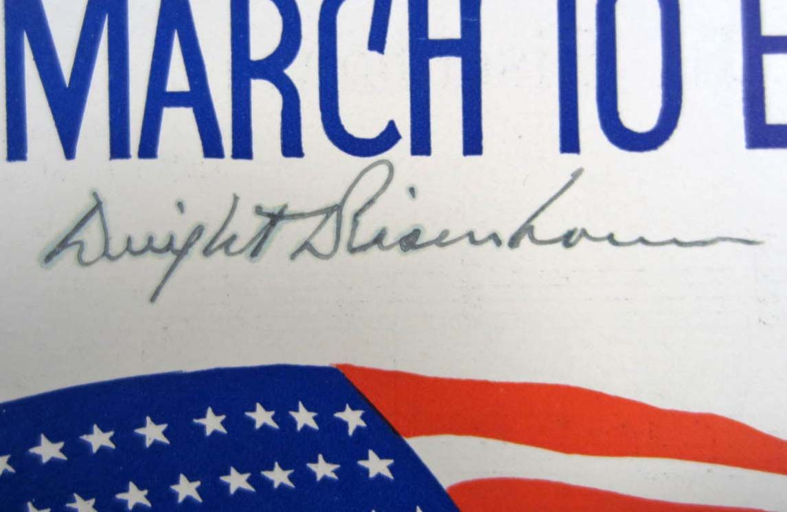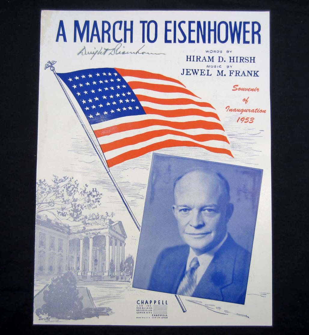 "A March to Eisenhower" Souvenir of Inauguration 1953, signed in black ink by President Eisenhower.
