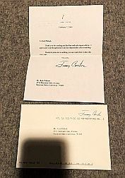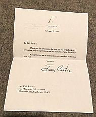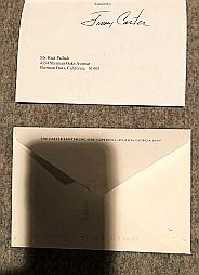 PRESIDENT JIMMY CARTER ORIGINAL SIGNED LETTER TO FAMOUS LOS ANGELES HOLLYWOOD CALIFORNIA FASHION DESIGNER AND ENVELOPE