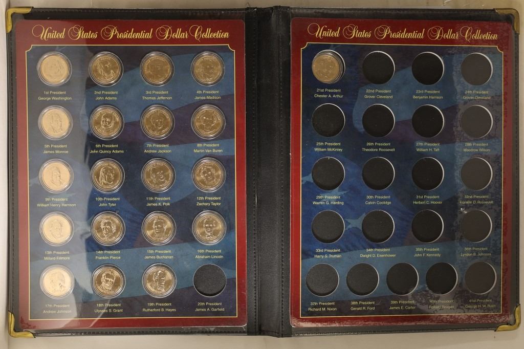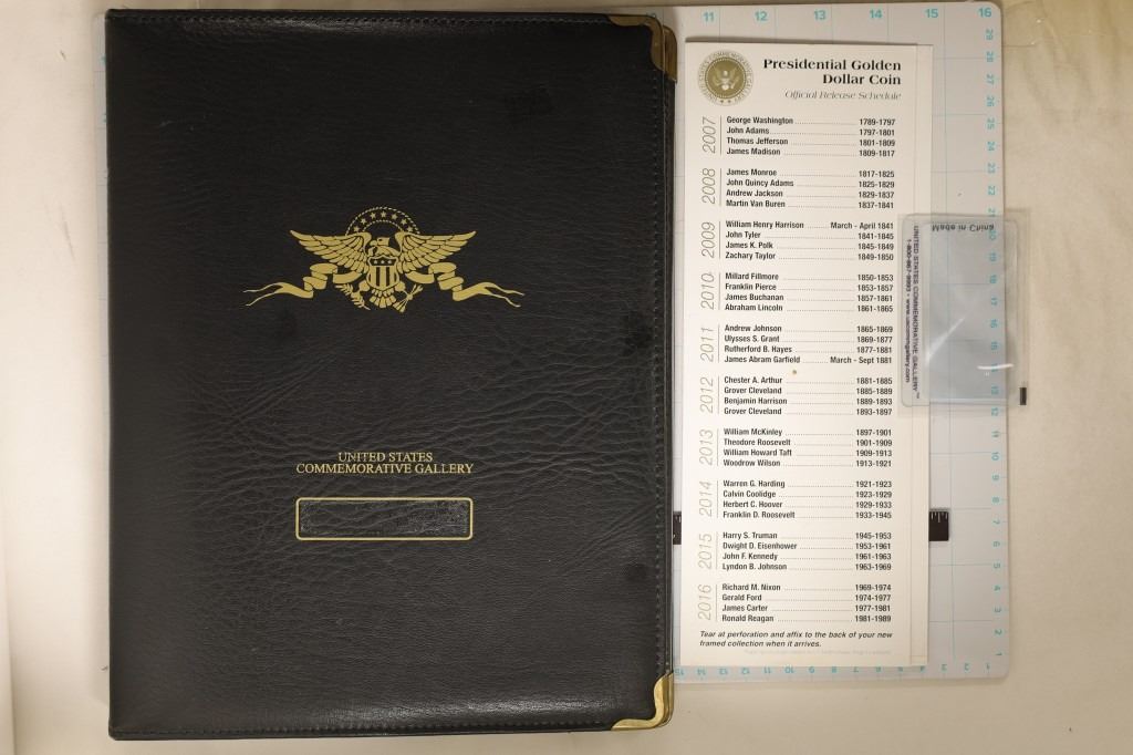 UNITED STATES COMMEMORATIVE GALLERY FOLIO, 2007-2012 WITH OPEN SPOTS FOR THE REMAINDER OF THE SERIES. COMES WITH THE CERTIFICATE OF AUTHENTICITY AND MAGNIFIER CARD. NOT COMPLETE ALL COINS ARE UNC IN HARD PLASTIC CAPSULES