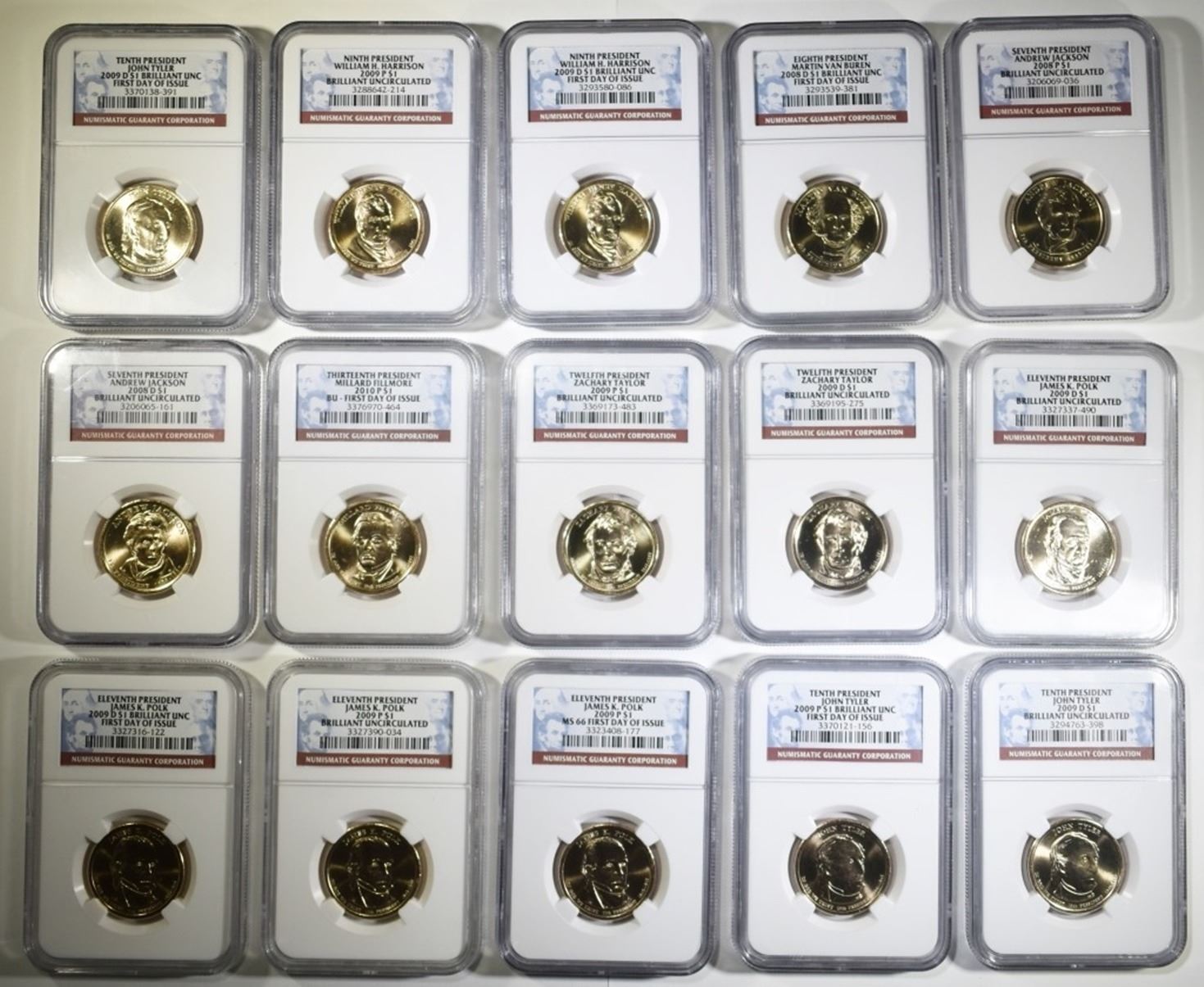 ANDREW JACKSON, 08-D MARTIN VAN BUREN, 09-P & D WILLIAM HARRISON, 09-P & 2 09-D JOHN TYLER, 2 EA 09-P & D JAMES K POLK, 09-P & D ZACHARY TAYLOR, AND 2010-P MILLARD FILLMORE ESTIMATE $125 - $150.