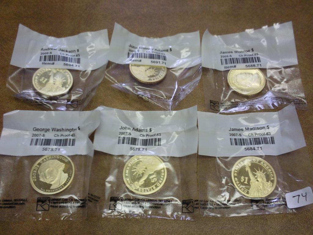 2008-S JACKSON, ADAMS, MONROE, SIX COINS ALL PROOF