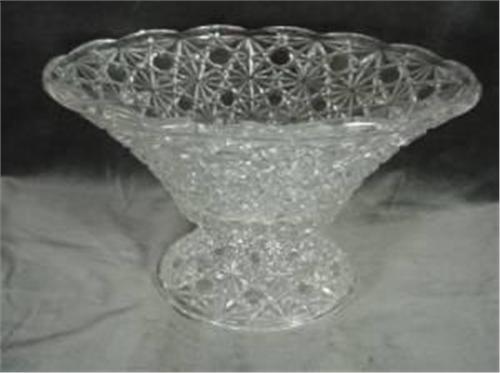 PRESSED GLASS PEDESTAL FRUIT BOWL IN THE DAISY BUTTON PATTERN. 6"X10.5".
