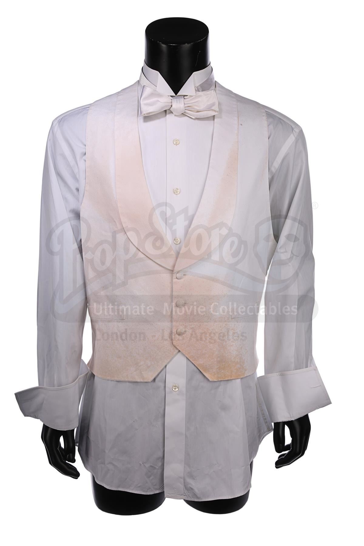 Robert Angier's (Hugh Jackman) white tuxedo shirt, waistcoat and tie from Christopher Nolan's period thriller The Prestige. Angier wore his tuxedo while performing his ultimate disappearing trick The Real Transported Man during his final show, while being watched by his rival Alfred Borden (Christian Bale). Later Angier's many clones are seen dead, wearing the same components.