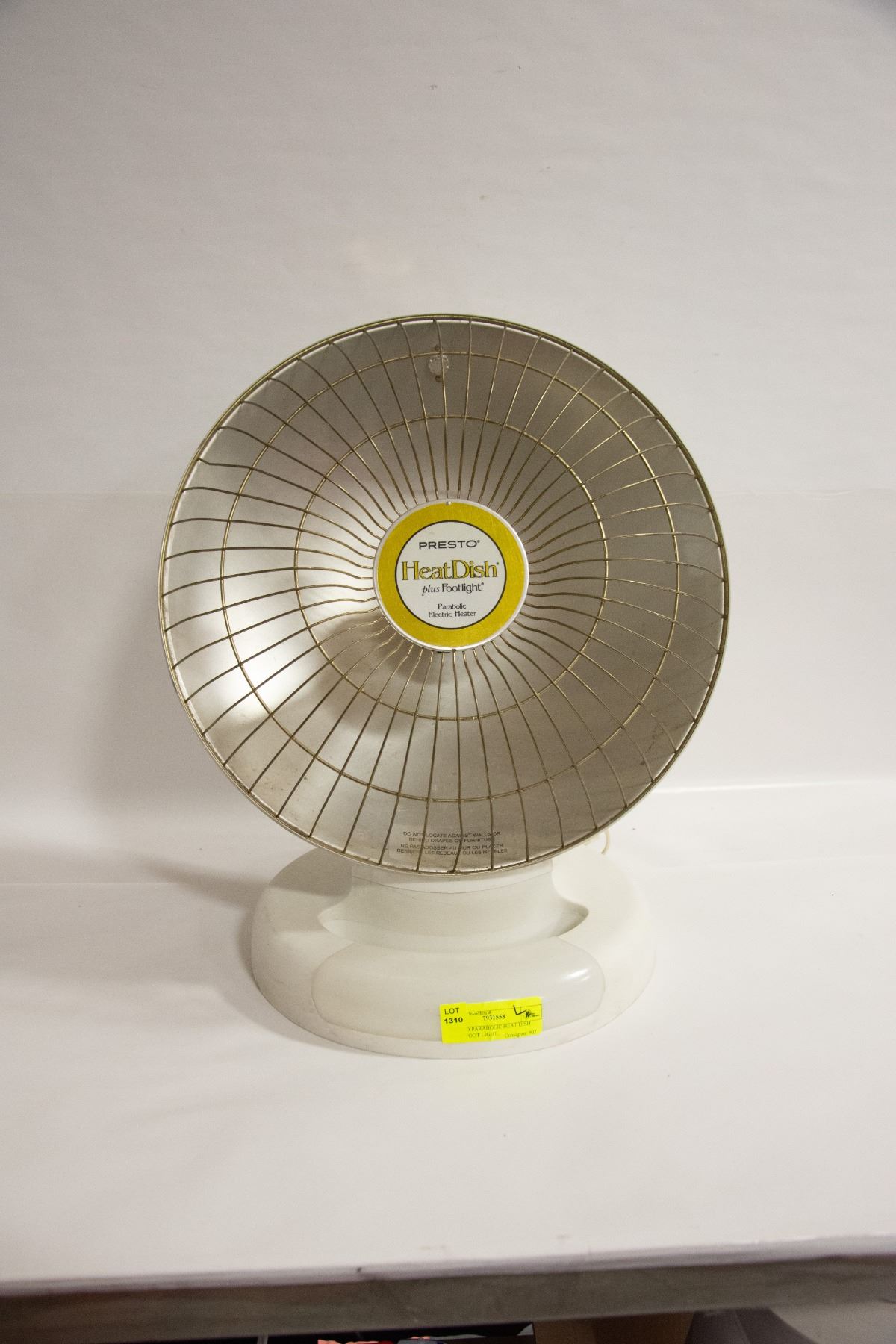 ADJUSTABLE TEMPERATURE, LIGHTWEIGHT AND PORTABLE, SAFETY TIP-OVER SWITCH, LOW COST ENERGY-EFFICIENT PARABOLIC ELECTRIC HEATER, NEW LIGHT (WORKING) **ALL ITEMS MUST BE REMOVED BY 5PM SATURDAY, FEBRUARY 4TH 2023.** ALL REMAINING ITEMS WILL BE SUBJECT TO A $6.00 PER DAY STORAGE CHARGE. ANY ITEMS REMAINING AFTER MONDAY, FEBRUARY 20TH, 2023 WILL BE CONSIDERED FORFEITED. NO REFUNDS WILL BE ISSUED FOR FORFEITED ITEMS. TO SCHEDULE A PICK UP APPOINTMENT CLICK HERE