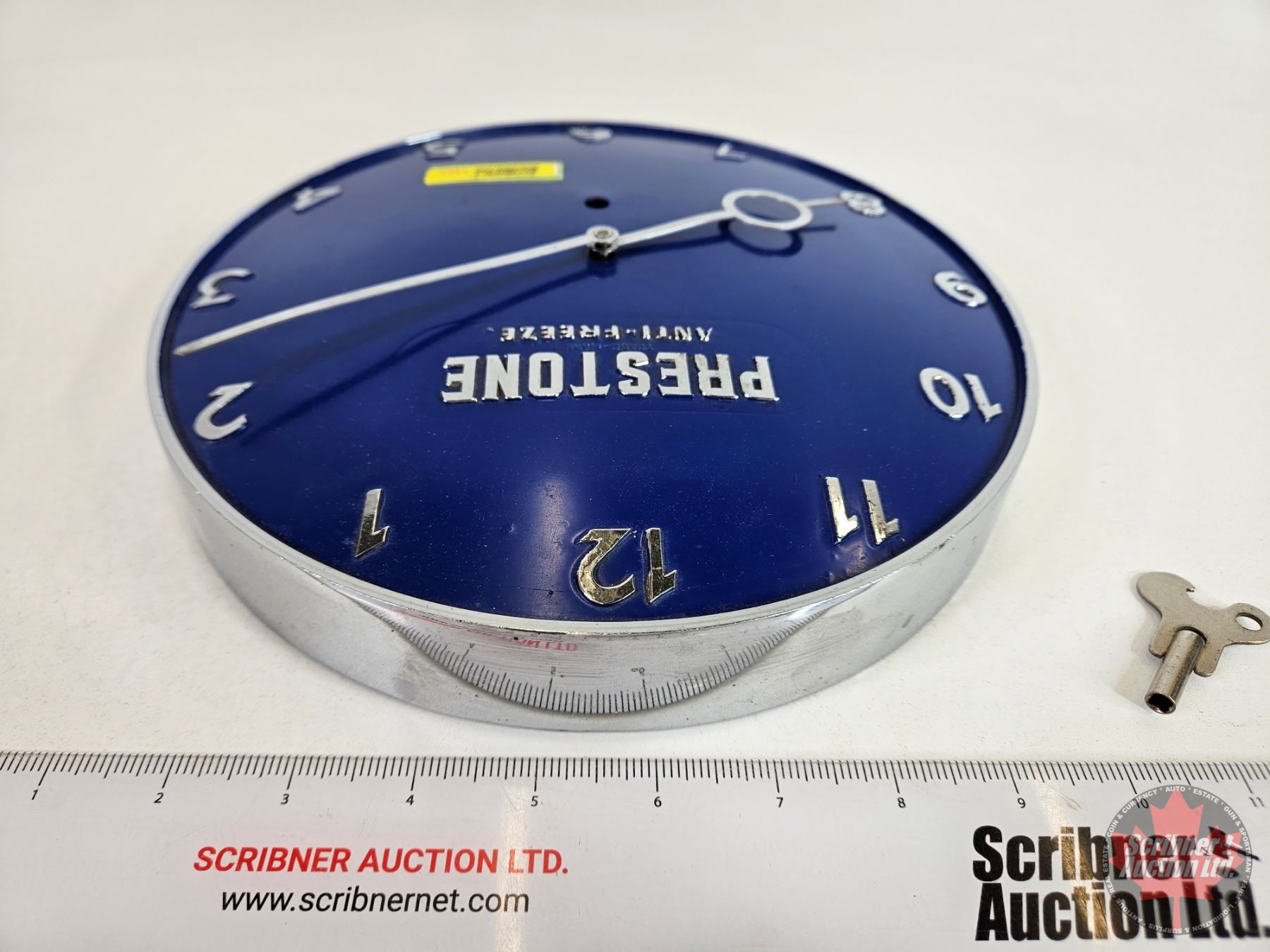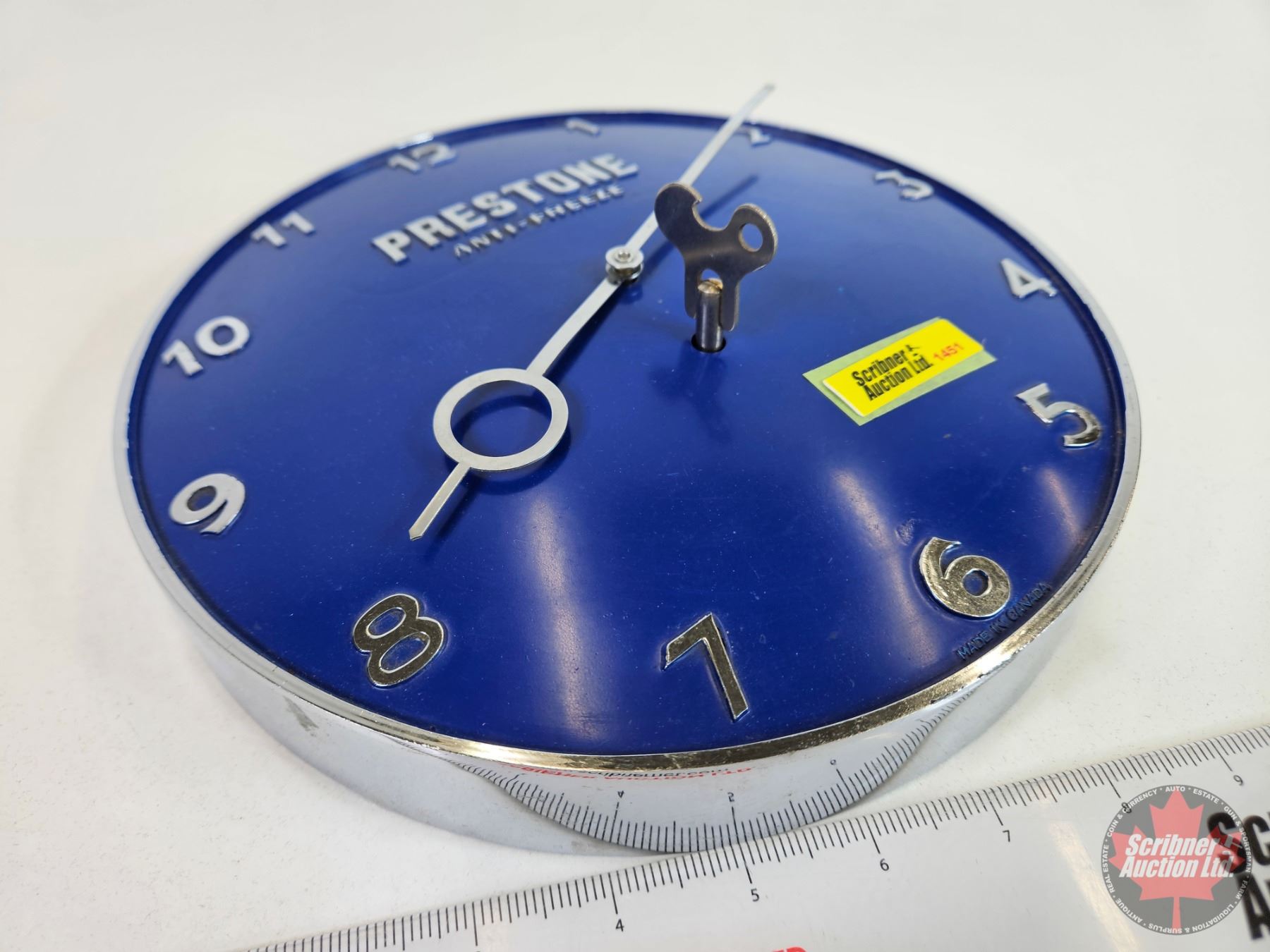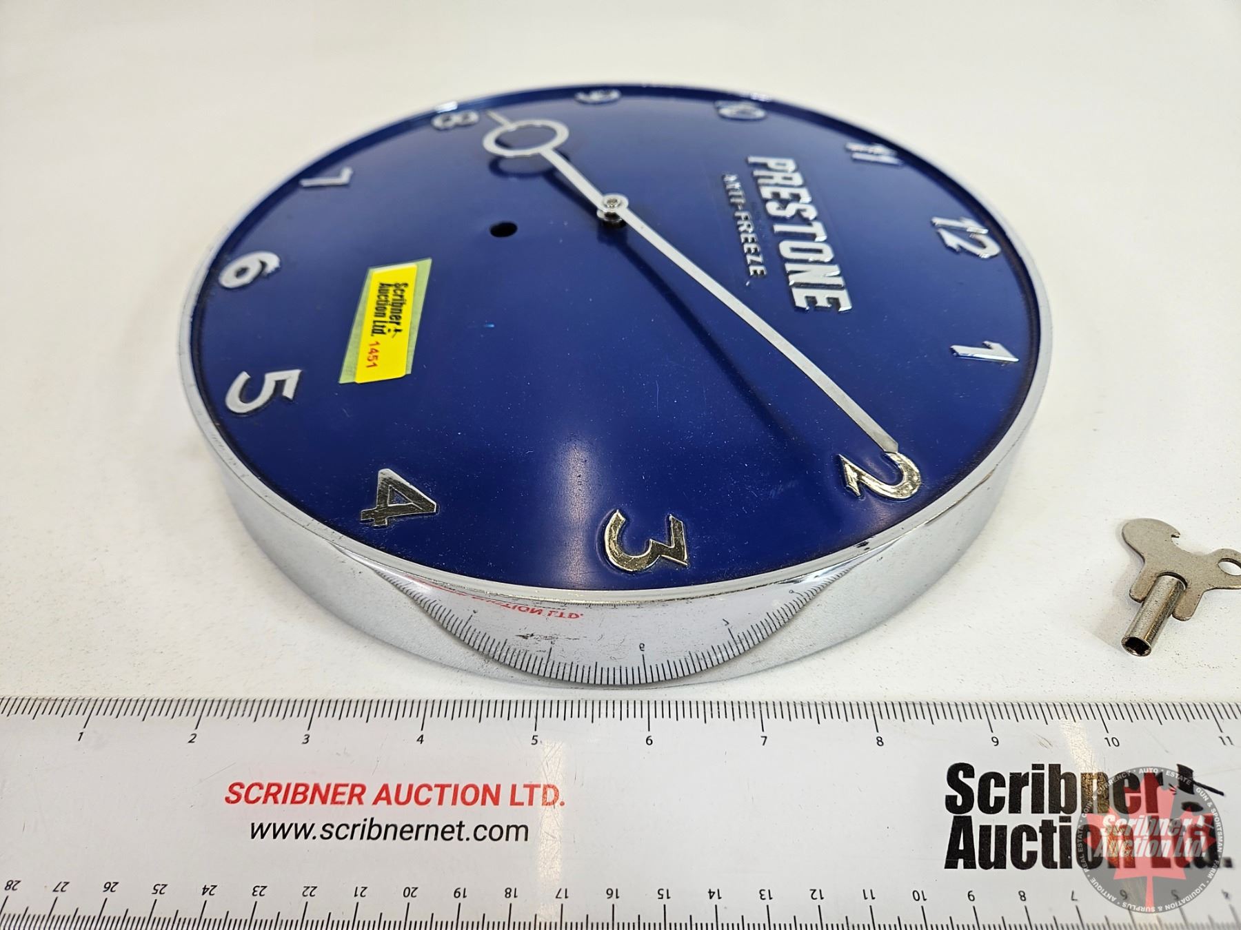 PRESTONE ANTI-FREEZE : Wind Up Clock c/w Key (Consignor Notes: Works Perfect)