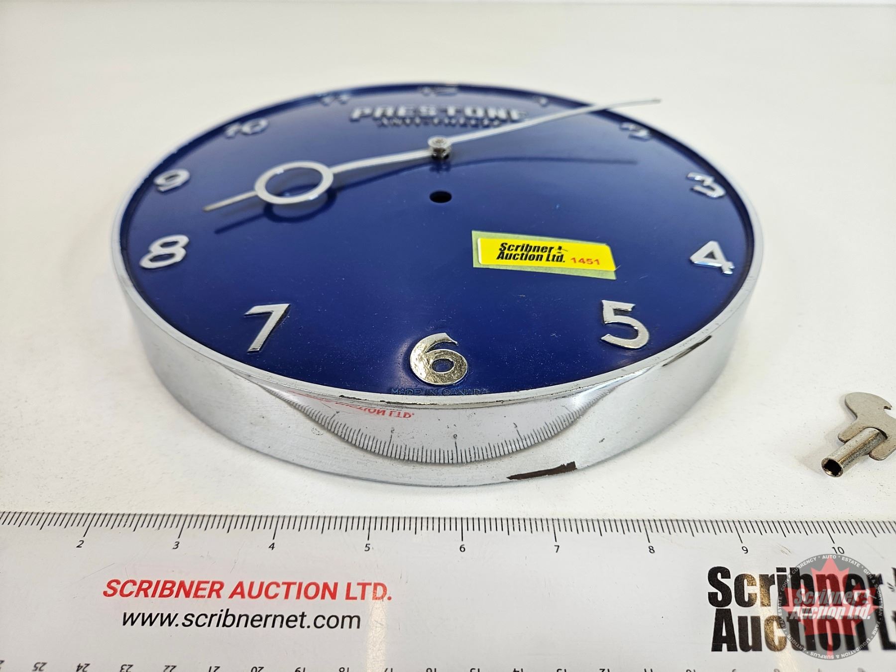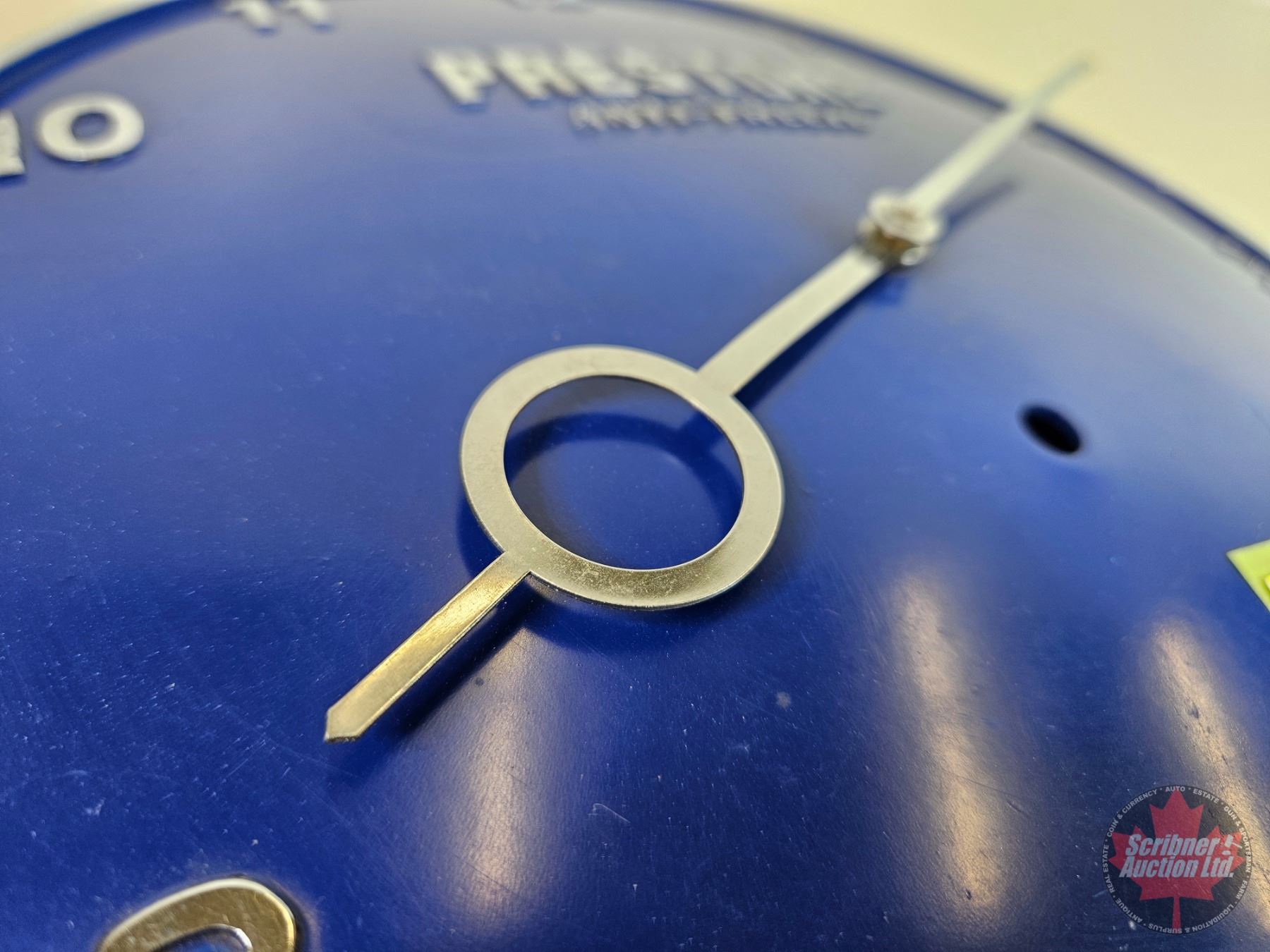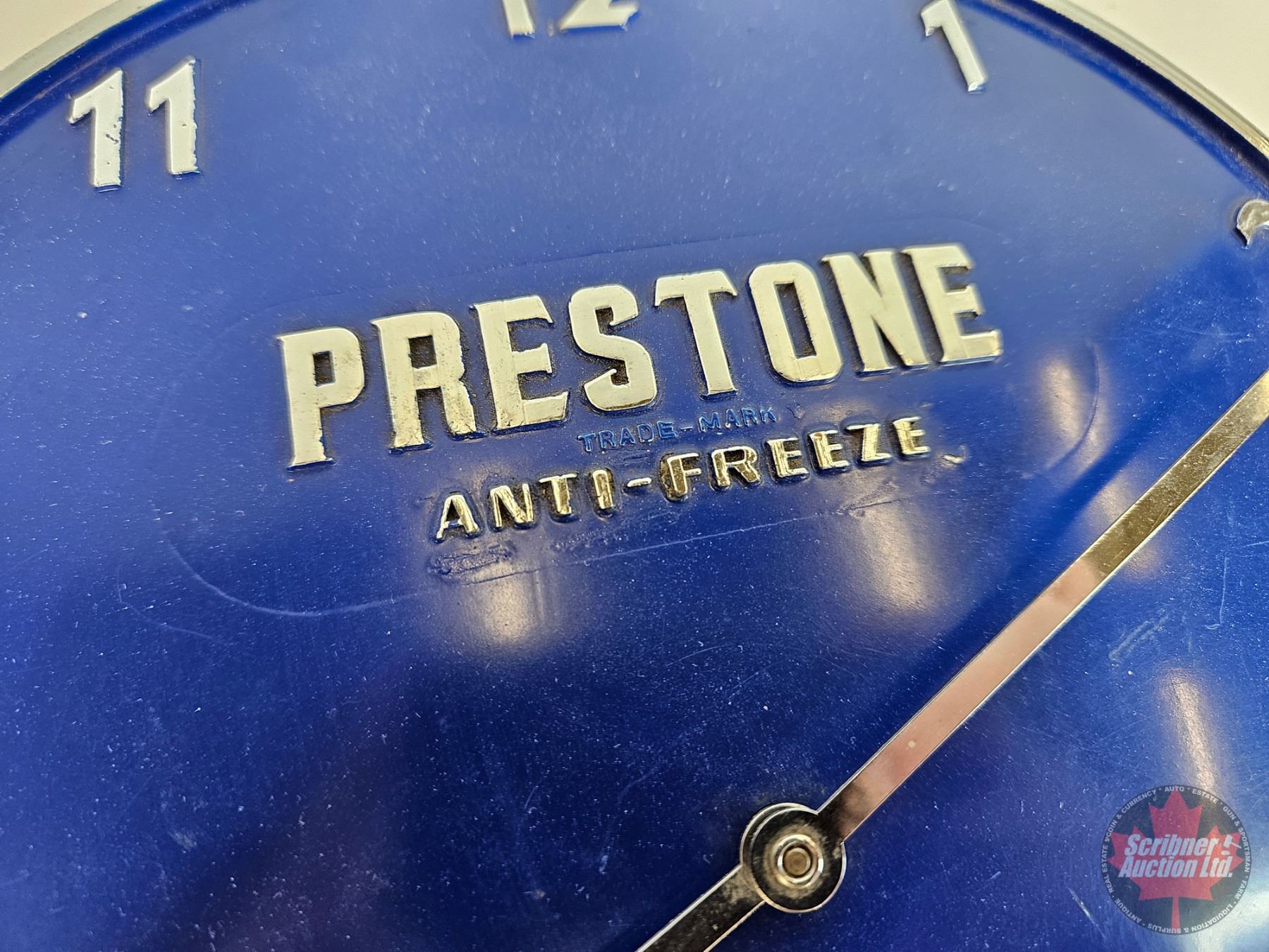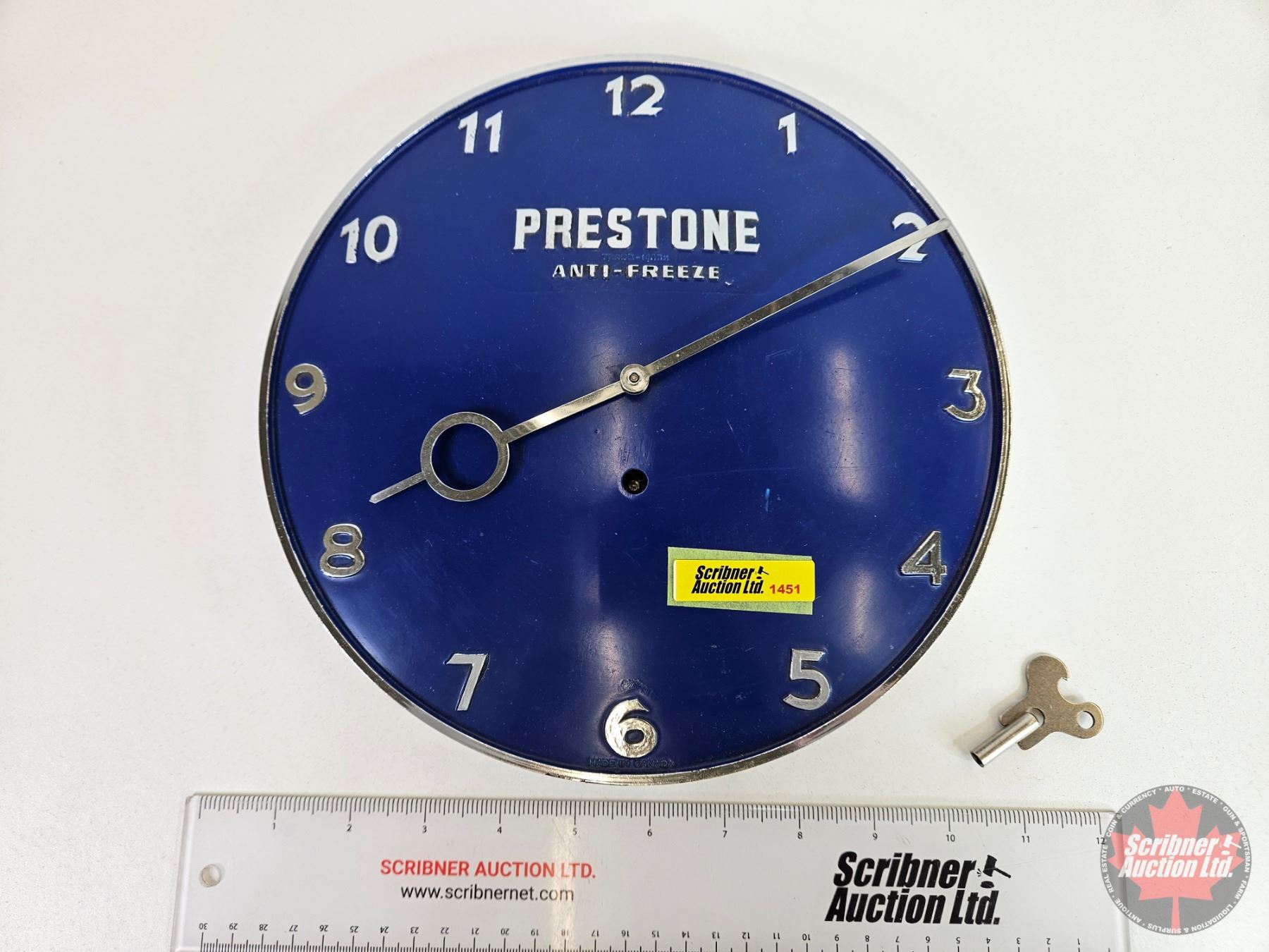 PRESTONE ANTI-FREEZE : Wind Up Clock c/w Key (Consignor Notes: Works Perfect)