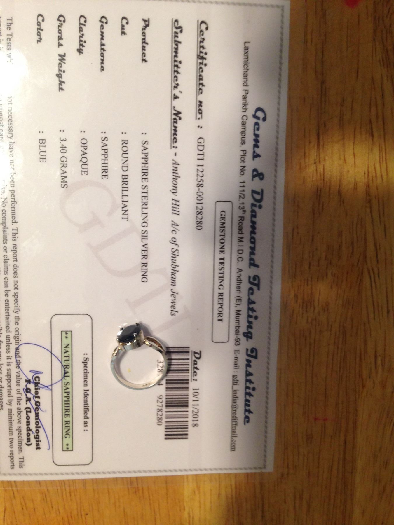 PRETTY 4 CT CERTIFIED BLUE SAPPHIRE RING MOUNTED IN SOLID .925 STERLING SILVER. SIZE 9 . TOTAL GRAM WT 3.40.PLEASE SEE CERTIFICATION FOR FURTHER DETAILS