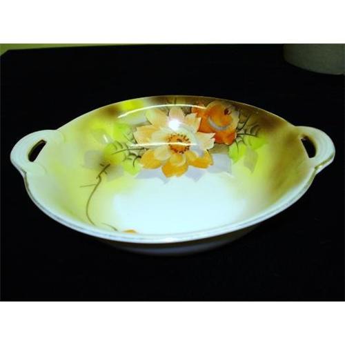 GORGEOUS ANTIQUE, 2 HANDLE BOWL OR DISH,HAND PAINTED, DEPICTING FLORASL THEME, EXCELLENT DETAIL AND VERY PLEASING COLORS,EXCELLENT, MINT CONDITION,US BUYER TO PAY 7.00 FOR SHIPPING PLUS INSURANCE.THANK YOU.