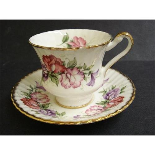 OH SO PRETTY,VINTAGE CUP AND SAUCER, MADE BY PARAGON - ENGLAND FROM FINE BONE CHINA, DEPICTING BEAUTIFUL SWEET PEA BLOSSOMS, BOTH PIECES ARE MADE WITH FINE FLUTING AND GOLD ACCENTS - AS PER IMAGES - Excellent condition - free from chips or cracks, US Buyer to pay 7.00 for shipping plus insurance,THANKS.